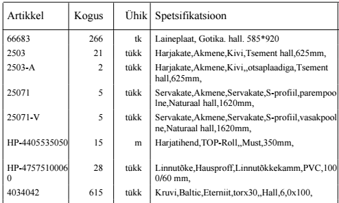| Ehitusmaterjalid: | Töö tegija poolt |