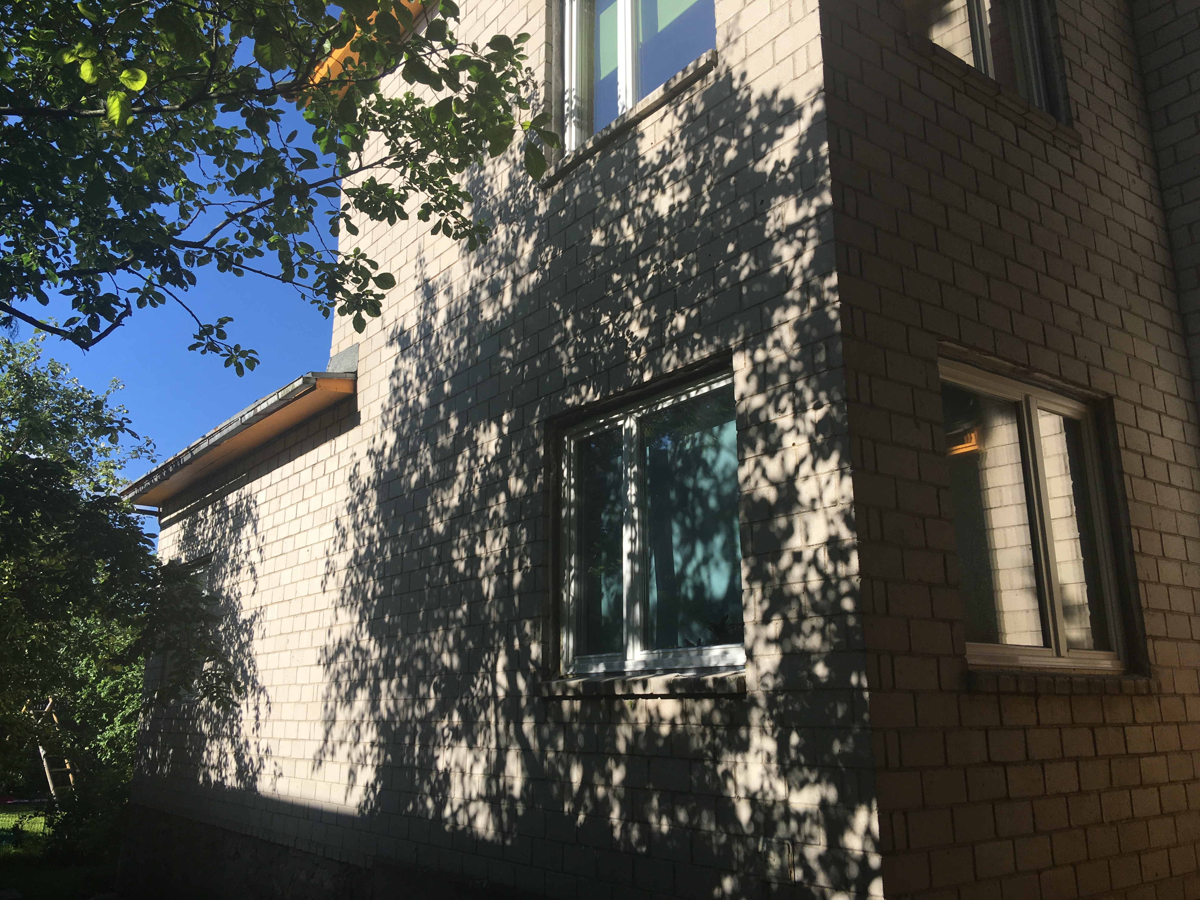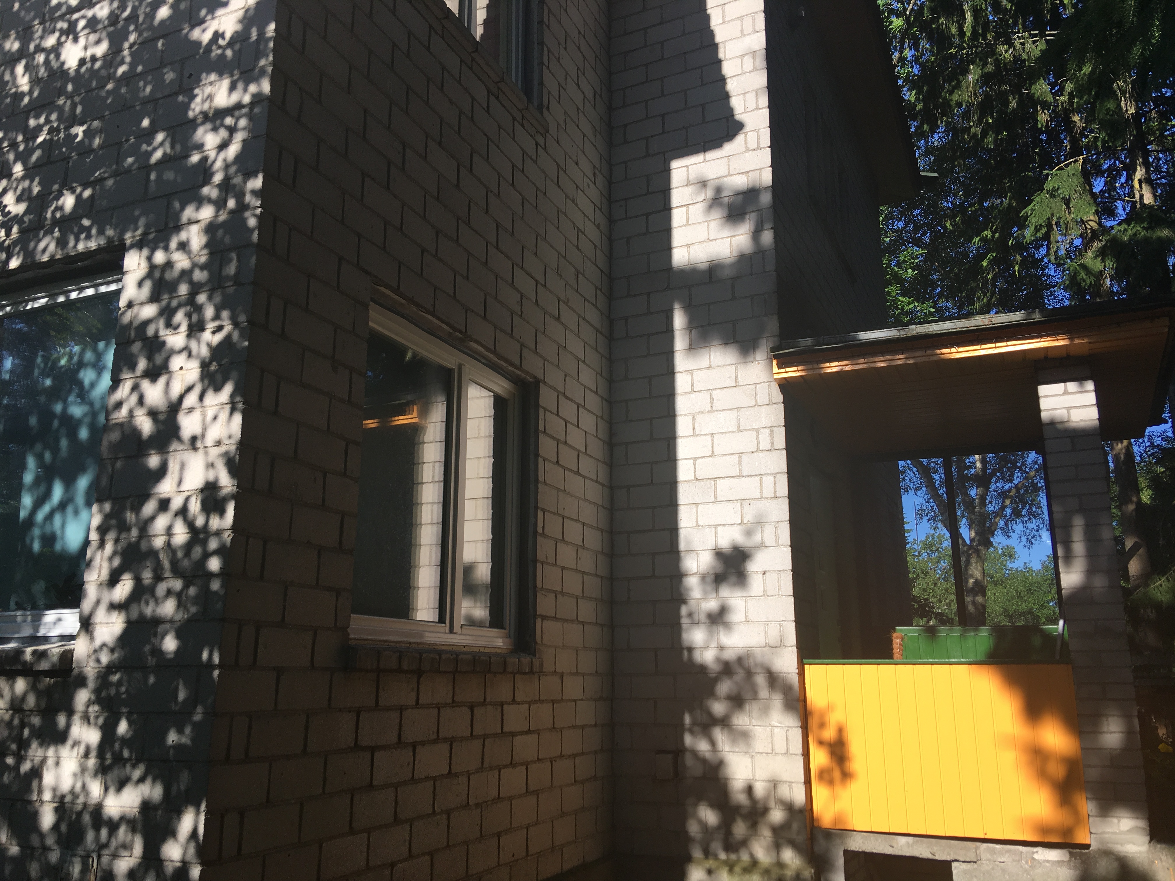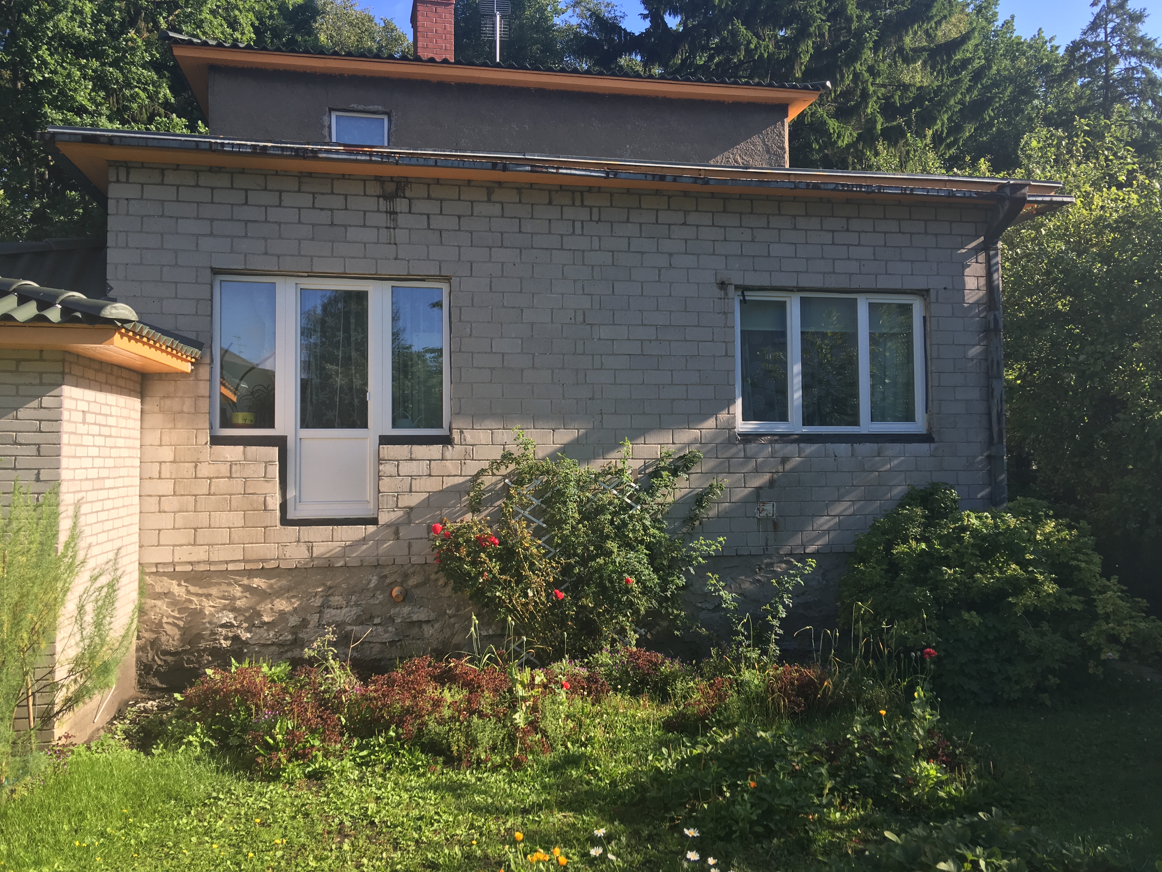 Maja on 2 korruseline silikaat fassaadiga ja kõrge vundamendiga.