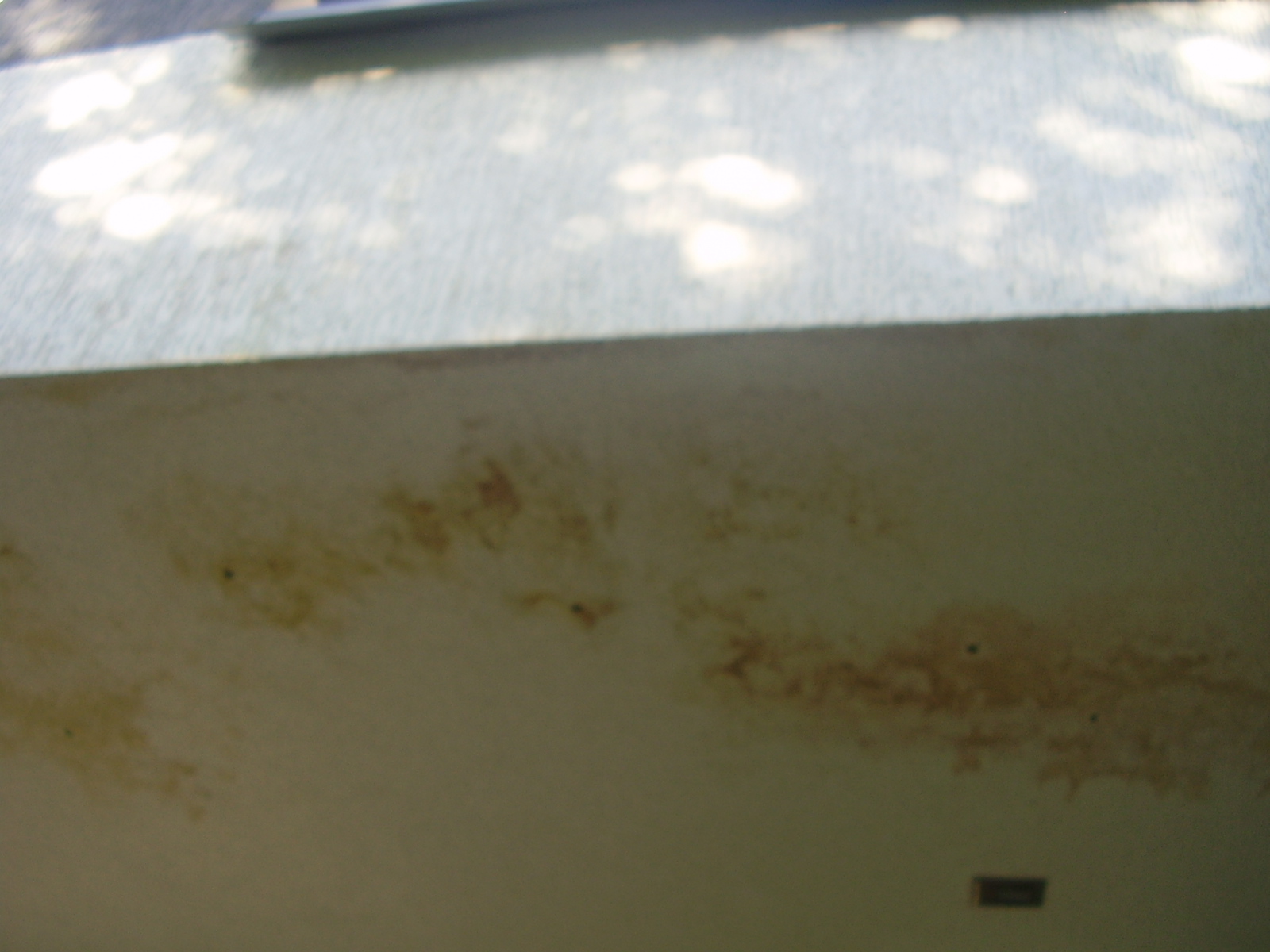 Ei tea, kas on põrandast vesi läbi imbunud või on kondents. Pruunikad laigud laes.