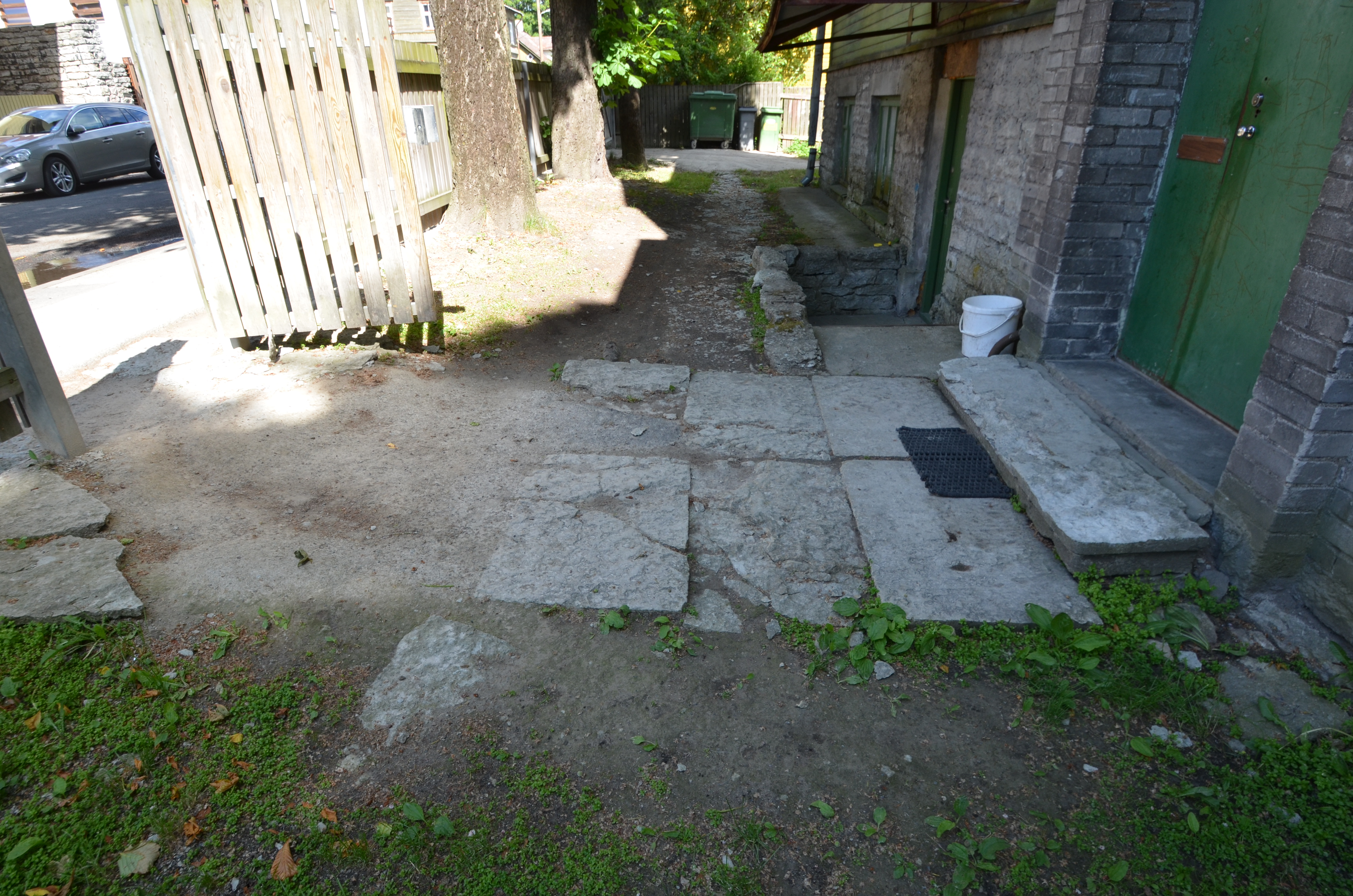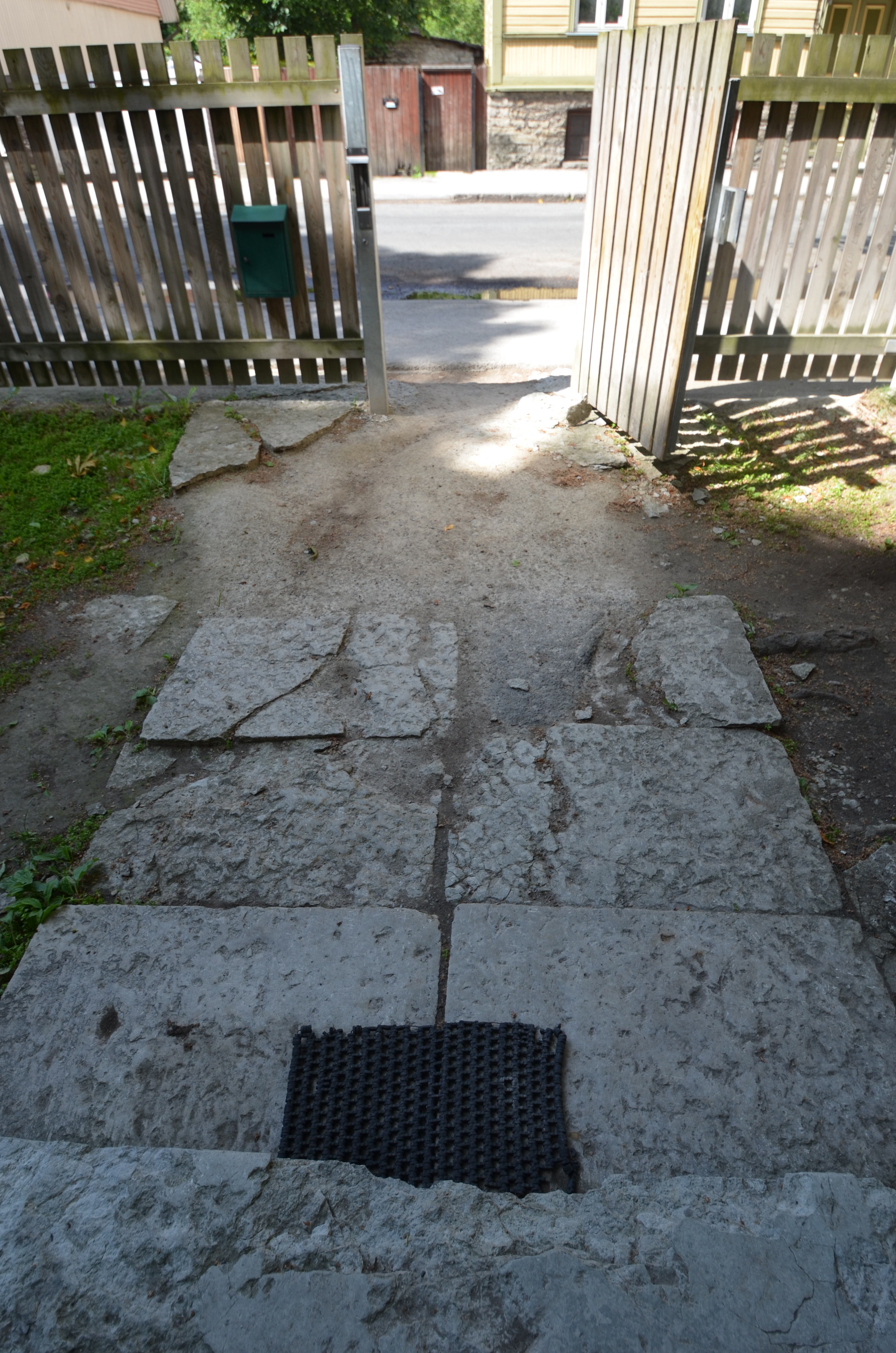 Kõrguste erinevus välisukse lävepaku ja tänaval asuva kõnnitee vahel võib nõuda madalat astet, kuid võimalusel seda vältida, kui kivide paigaldamisel on tagatud vihmavee äravooluks vajalik 1-2% kalle hoonest eemale või tee küljel asuvale muruplatsile.