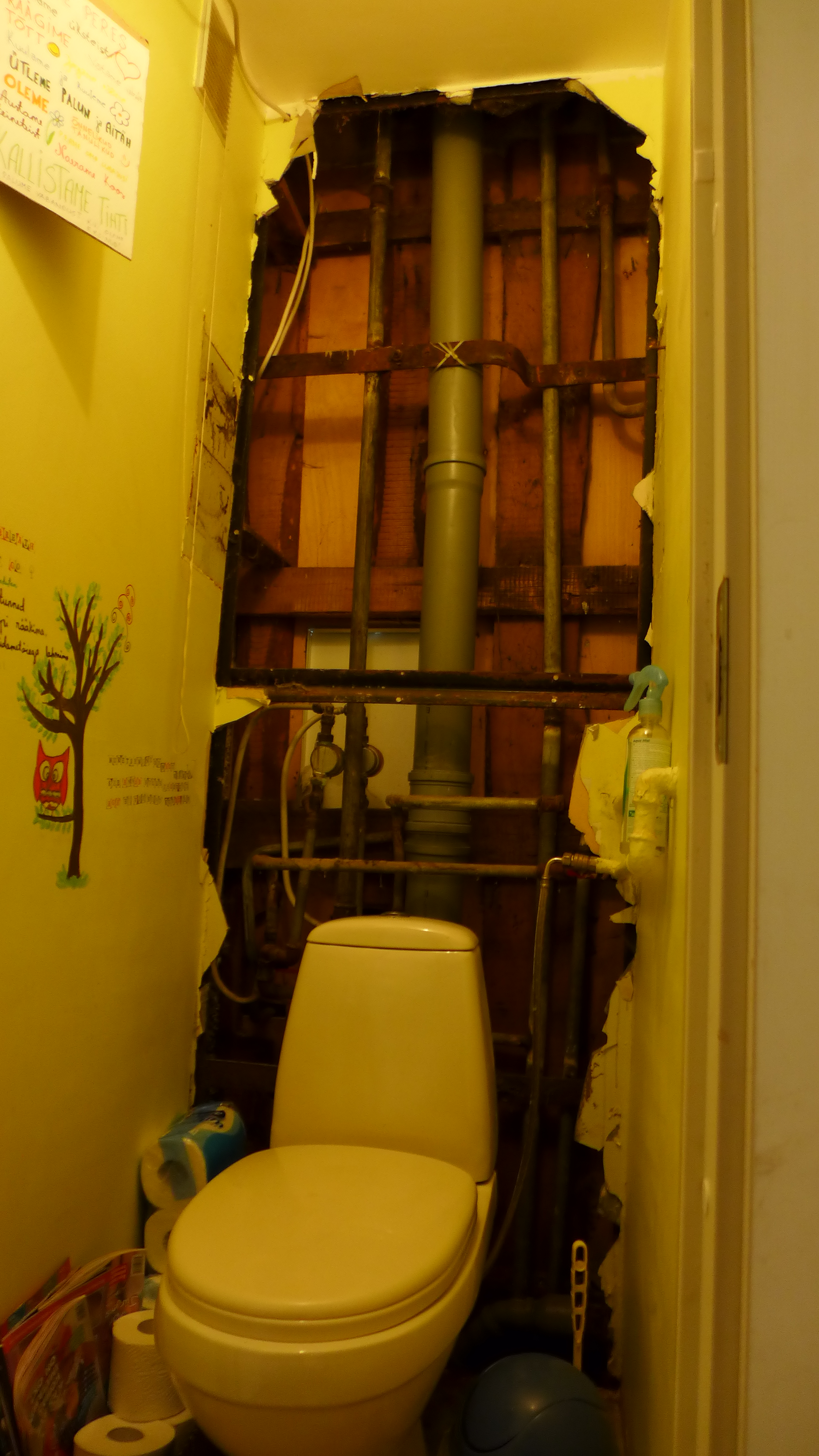 Annelinnas kahe korteri WC-s lõhuti seoses torudevahetusega maha terve tagumine sein mõõtudega ~235x78 cm.