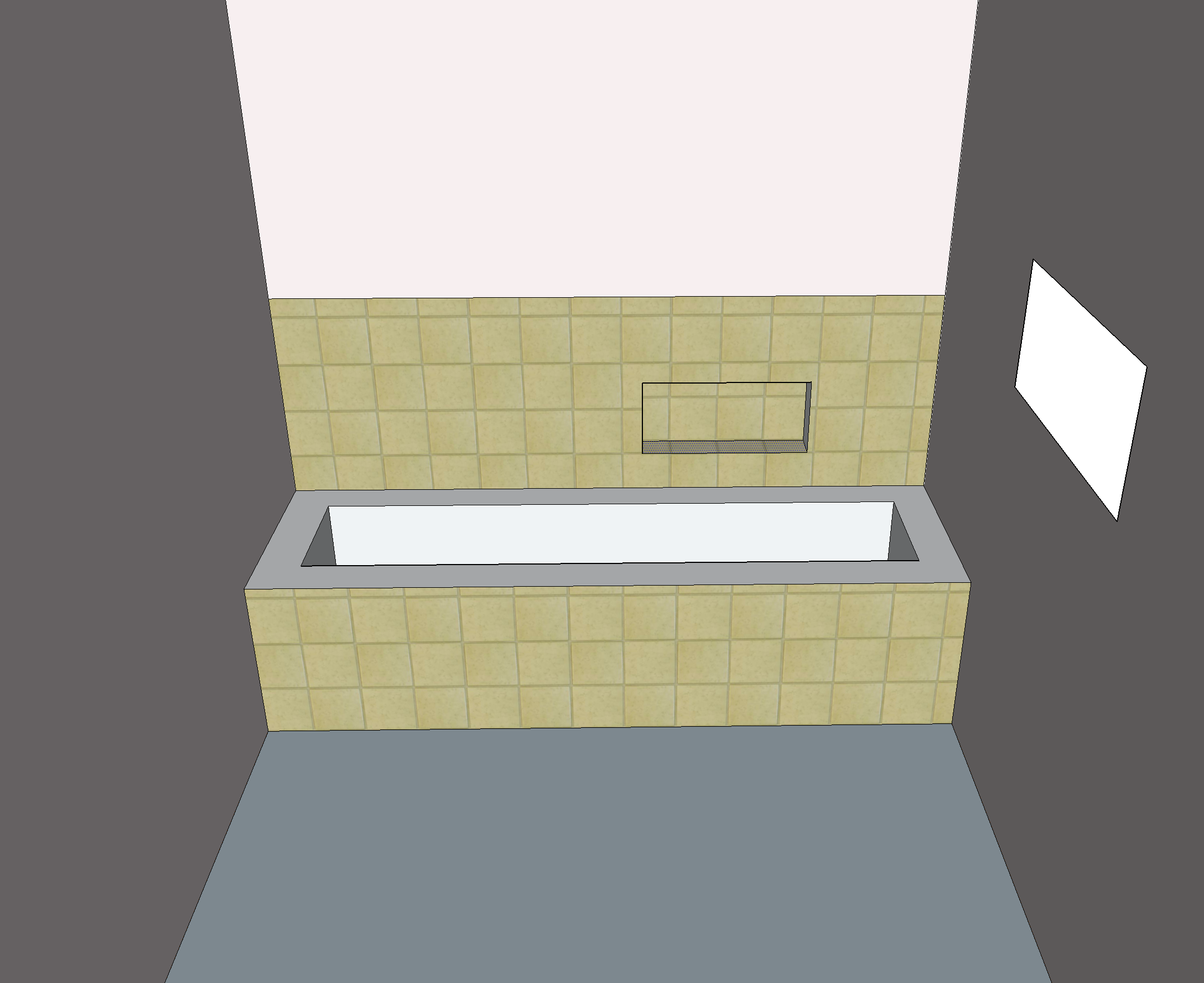 4. Vanni taguse seina plaatimine (1.75 x 1.8 m), koos šampooniriiuli süvendiga.
