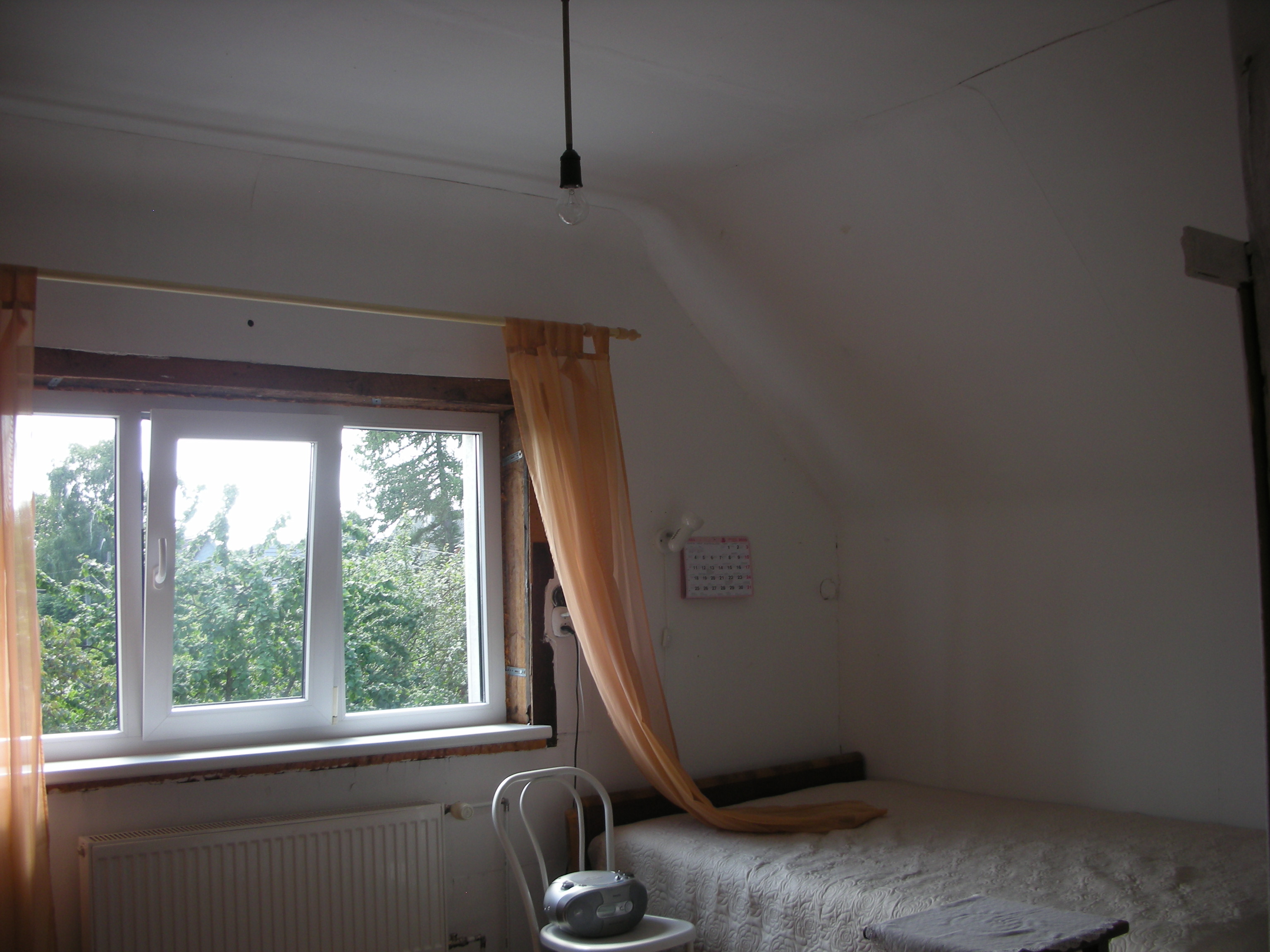 Lammutada lagi,seinad, põrand (puit). Paigaldada kipsplaat ilma karkassita. Seina tuleb tapeet, lakke värv. Olemasoleva pööninguluugi vahetus uue vastu. Elektrijuhtmete vahetus, pistikupesad. Põrandale parketi paigaldus. Korstnajala krohvimine.
