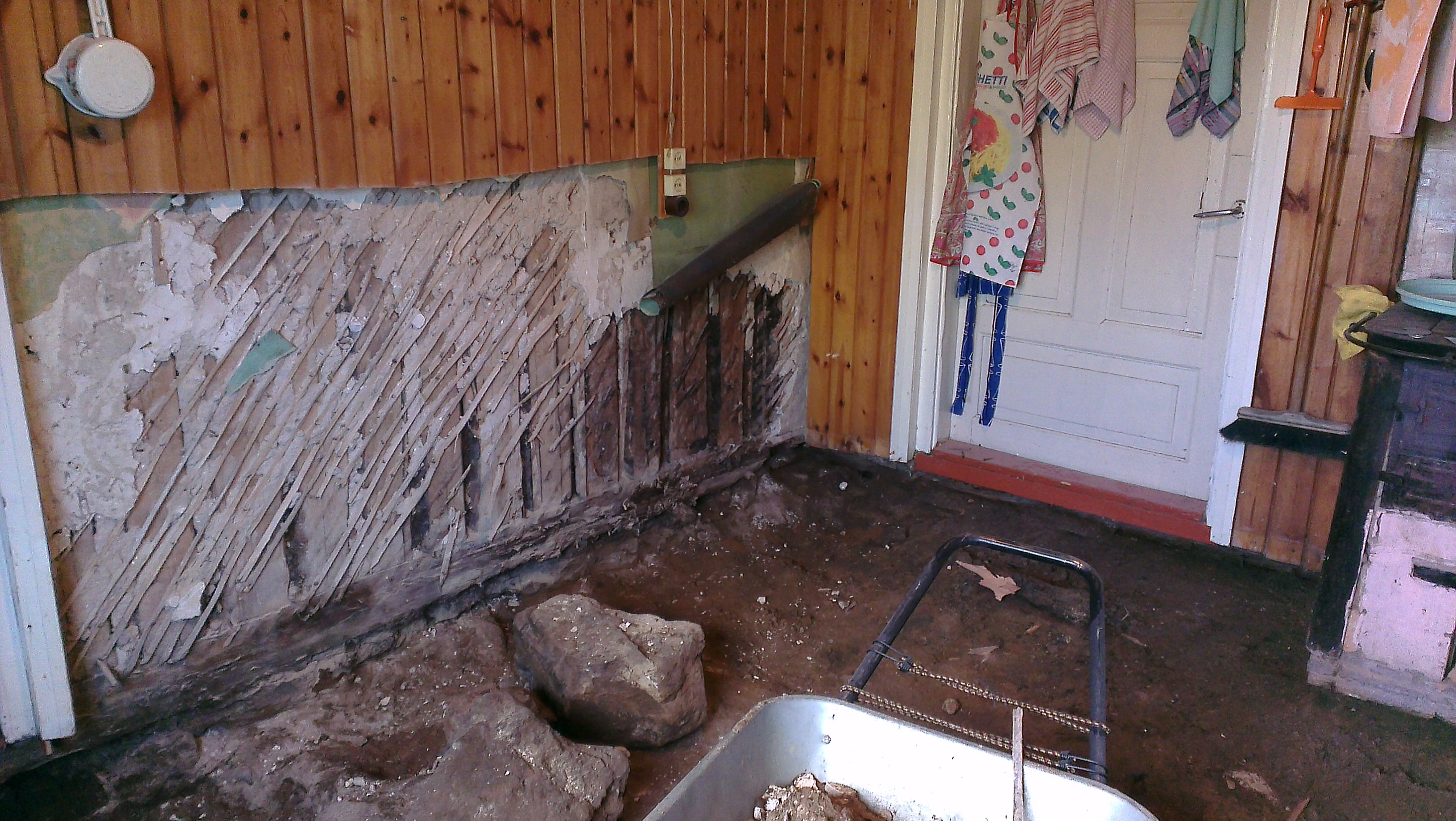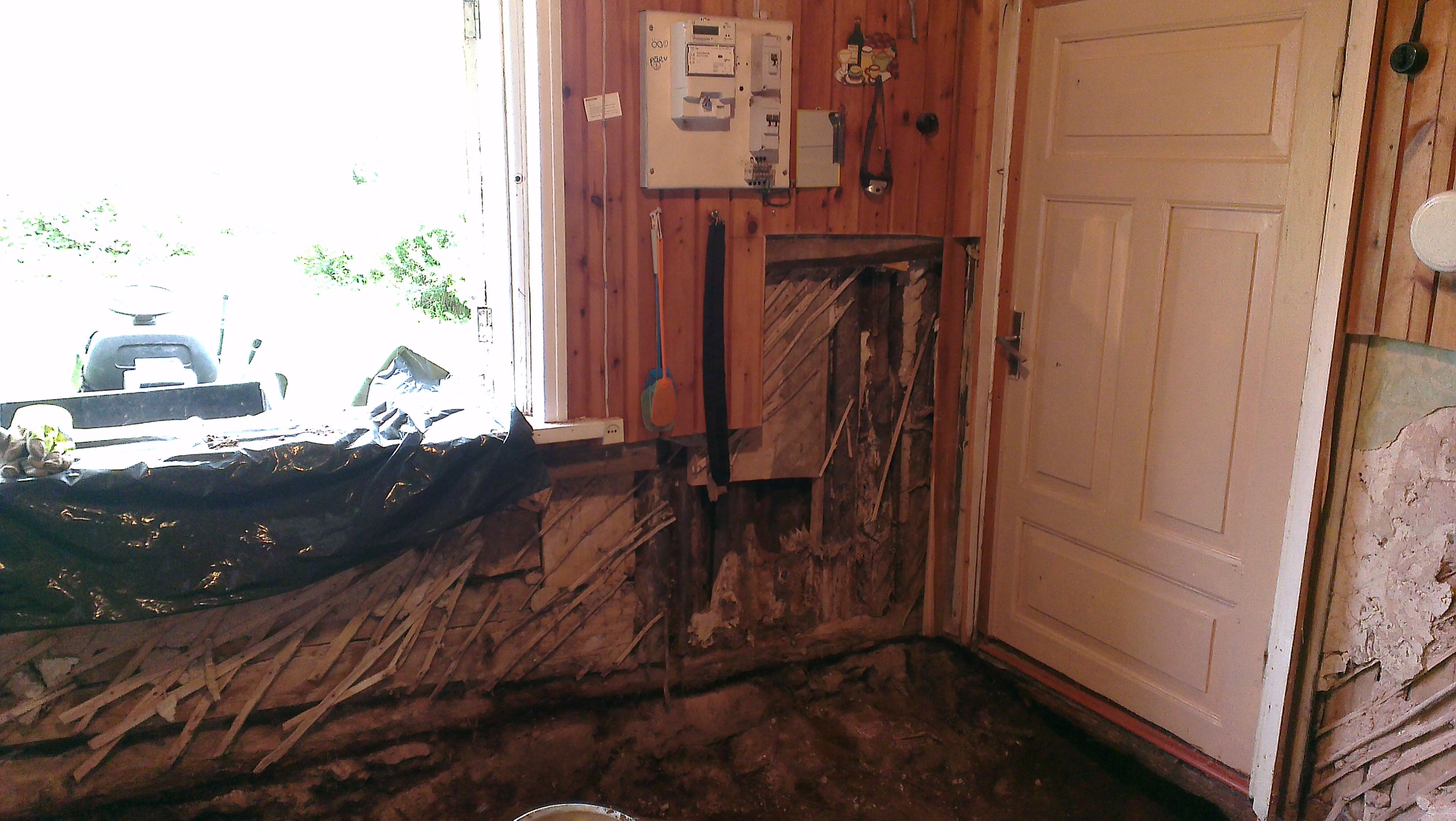 - ruumi siseseinte alumised prussid vahetada, teha vundamendipostid. Praegu on horisontaalsed prussid mulla peal, mis on samuti väga pehkinud. Põrand on ära kistud ja muld välja veetud, mistõttu on mõistlik need ära ka vahetada;