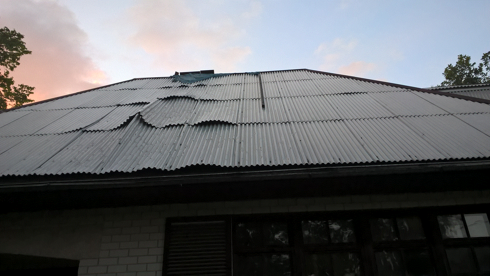 a) Vana alumiiniumist laineplaadi mahavõtmine,