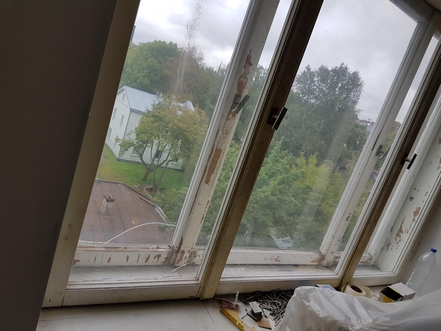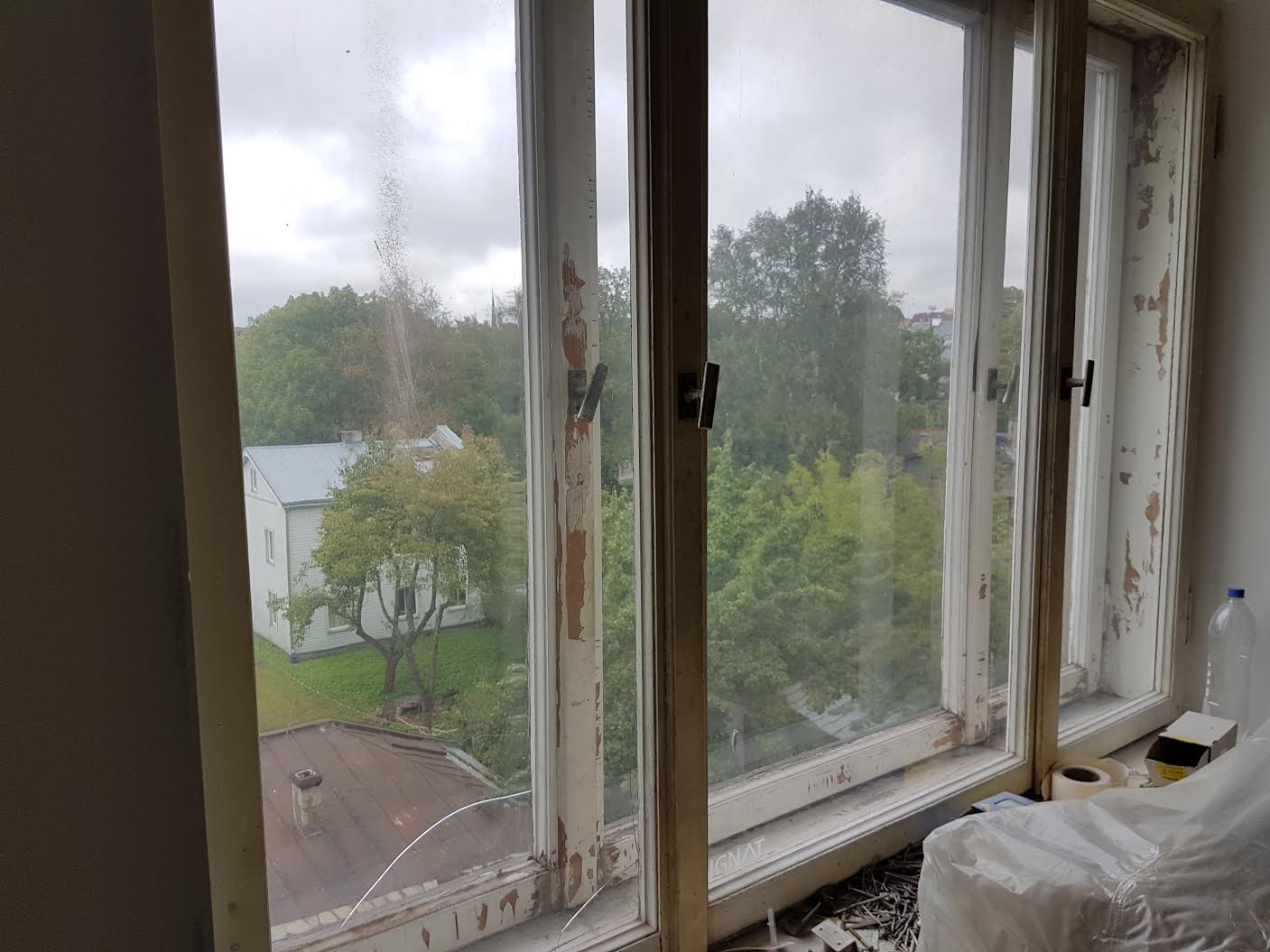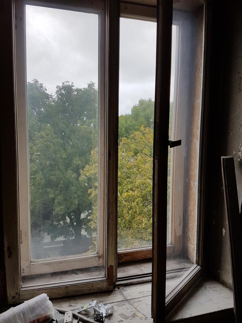 Hetkel olemas töömees palgal, kes tegelenud akende taastamisega, teeb tööd hoolega ja korralikult. |