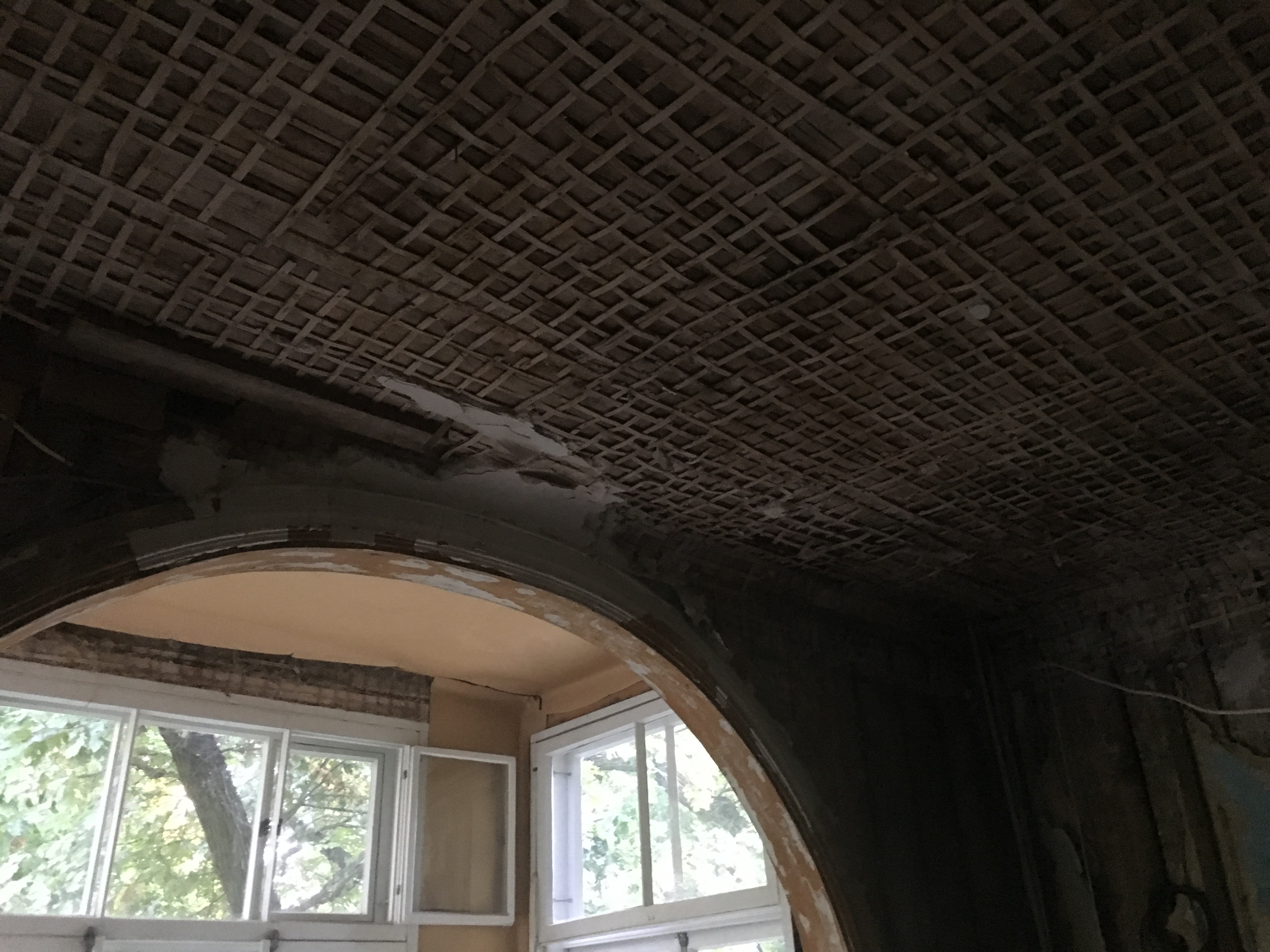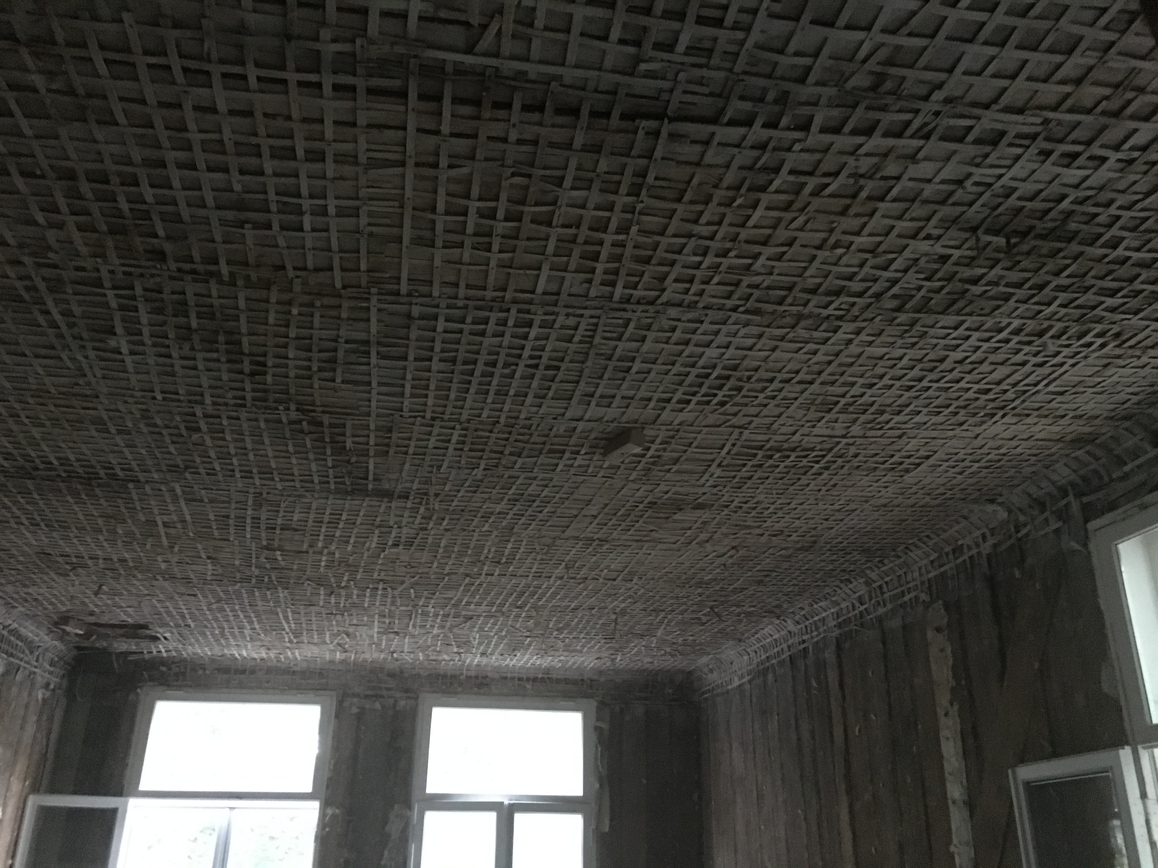 Ettevalmistatud pinnale (laudis+vana peergvõrk) krohvimine 3s kihis lubikrohviga ja krohvikihtide vahele armeerimisvõrgu paigaldamine. Lõpptulemuseks struktuurne (0-2mm) peenlubikrohvitud pind. Krohvikihi orienteeruv paksus 20 mm. Lagi peegelvõlviga.