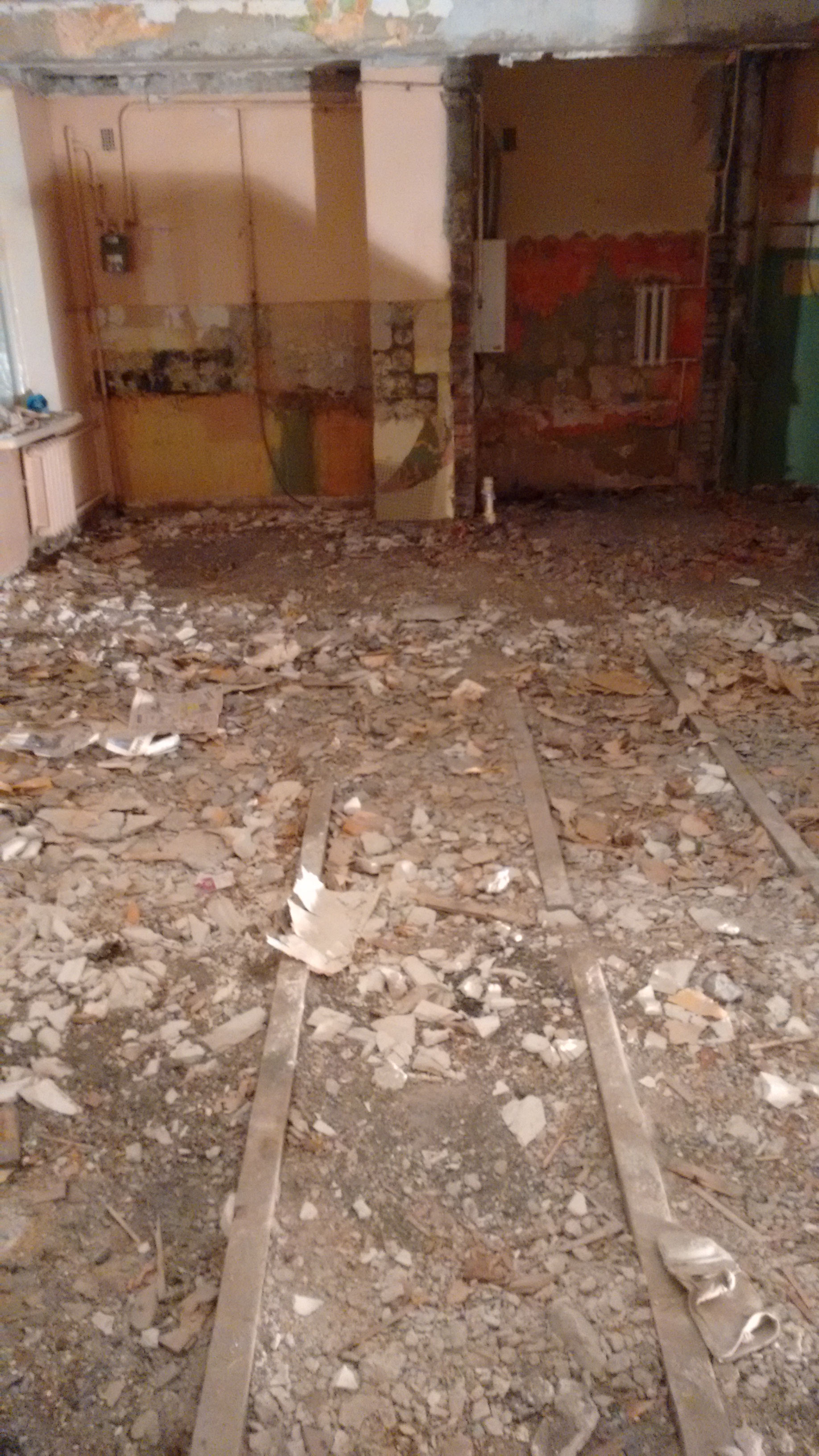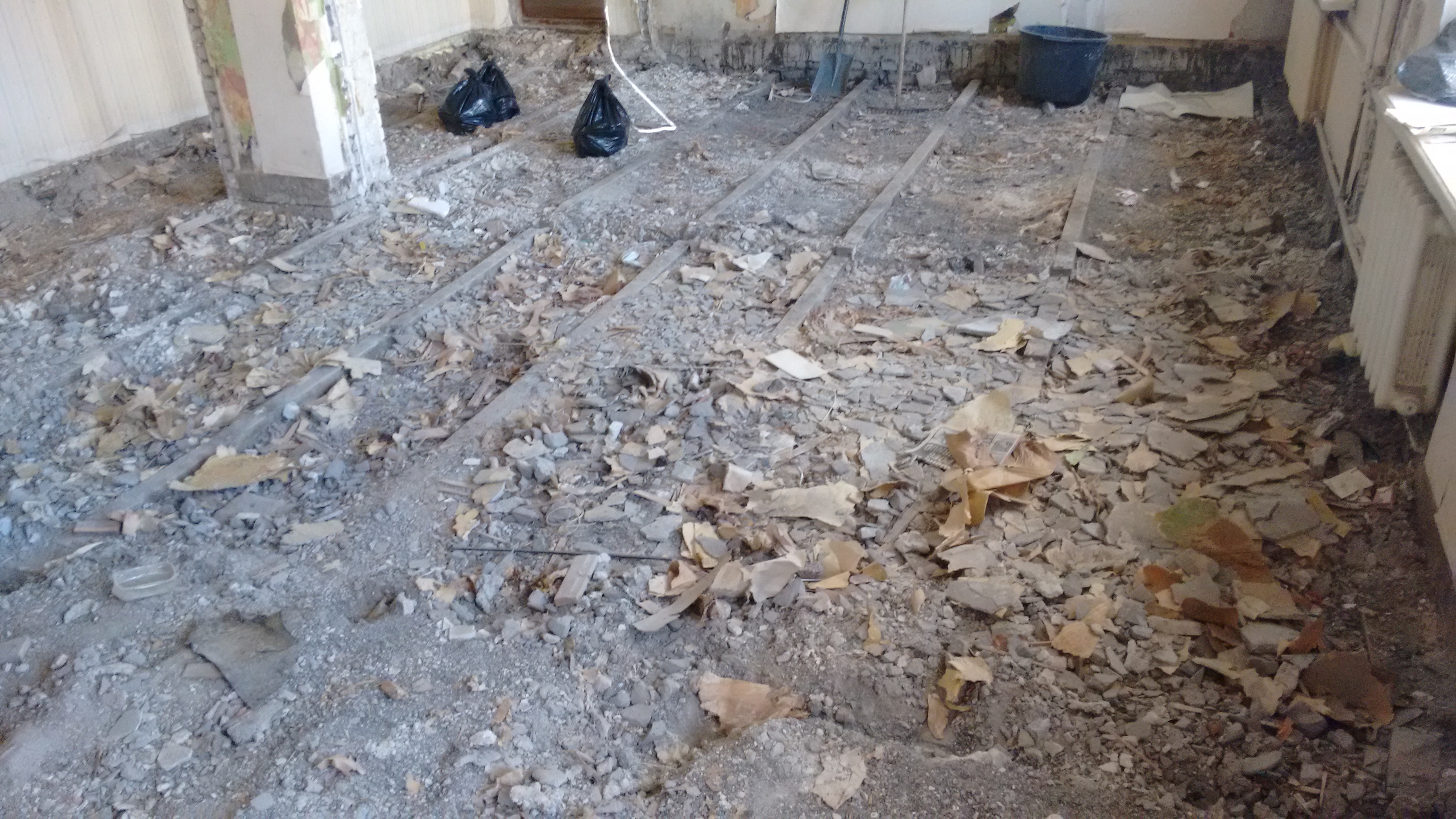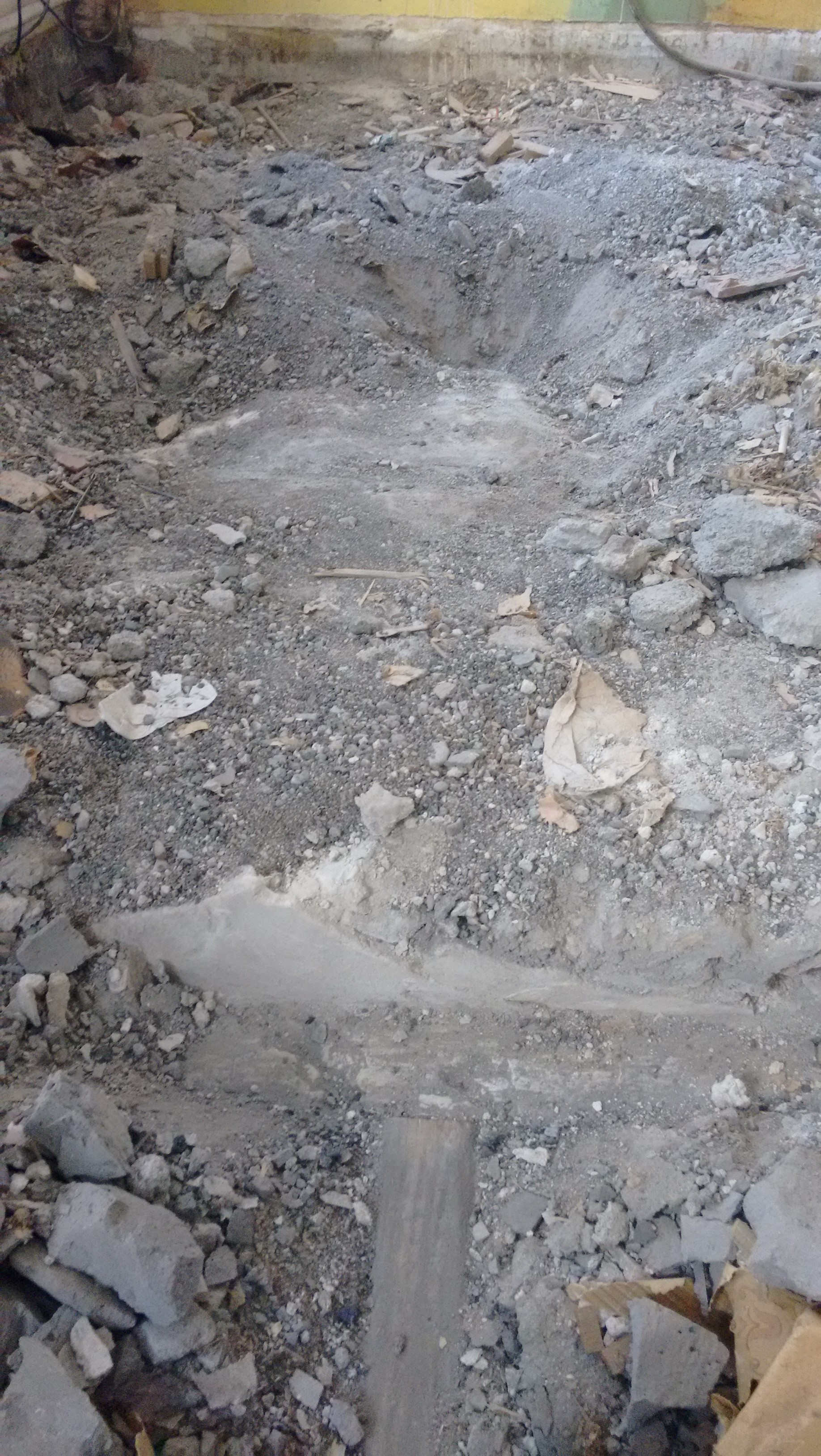 Kui vaadata hankes olevaid pilte, siis on näha vannitoa põrandat ning palju kivikribu põrandal. Töödega alustamise ajaks on kivikribu saviliiva pealt vähemaks võetud ning vannitoa põrand lõhutud.