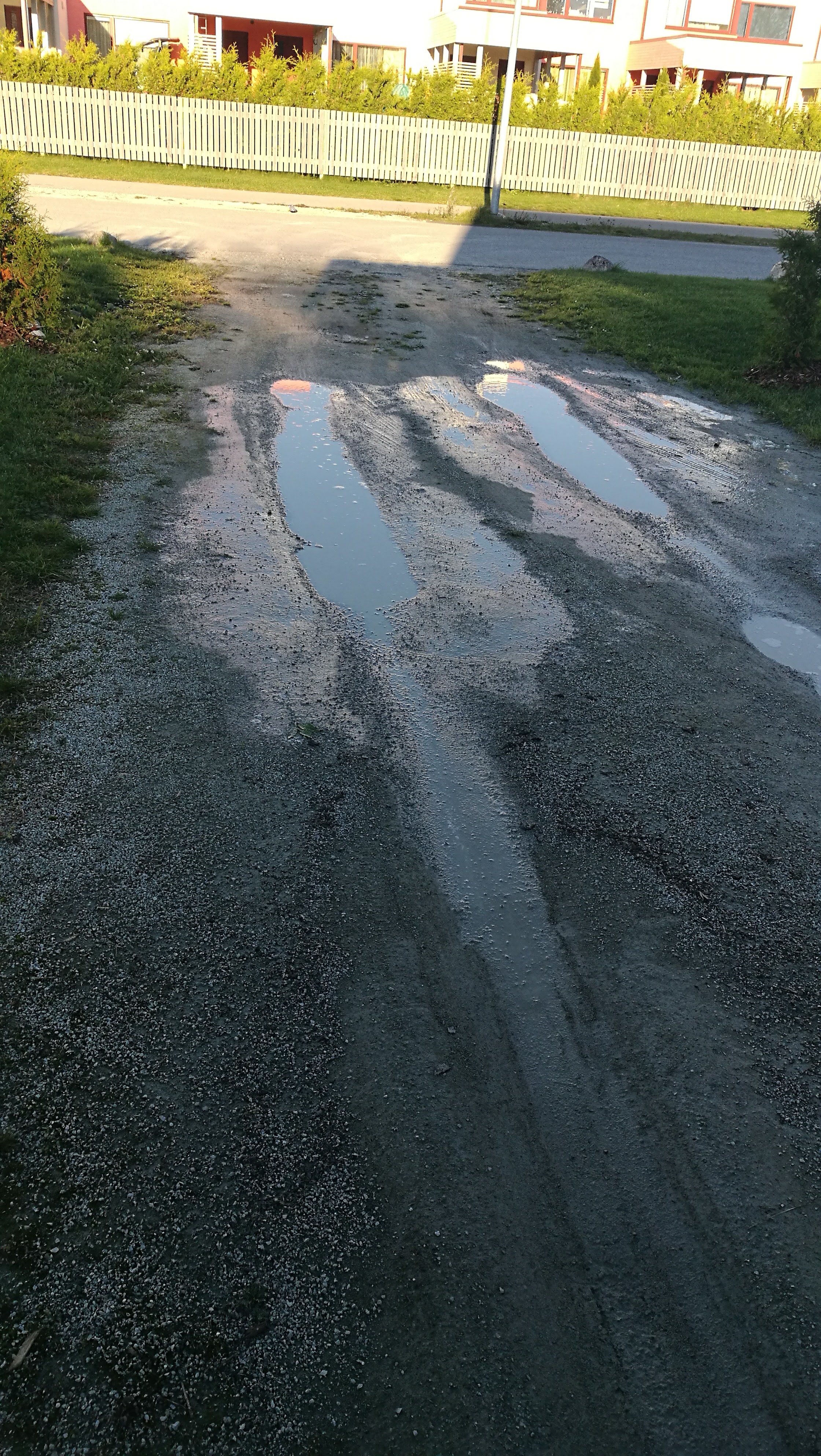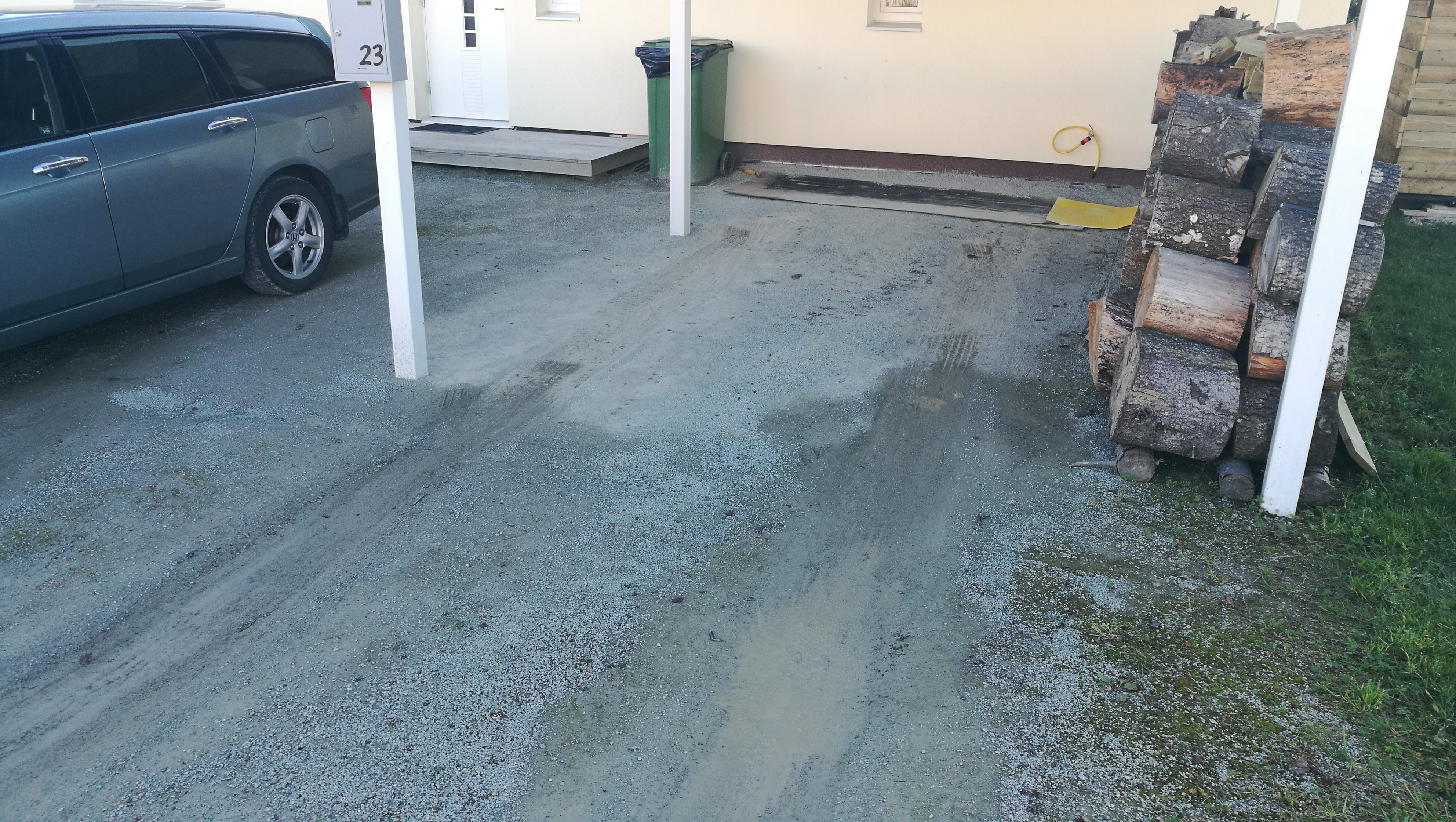 Pind ca 130 m2. Aluspind hetkel peenkillustik, osaliselt vajunud, paaris kohas läbikasvanud muru(vaata pilte)