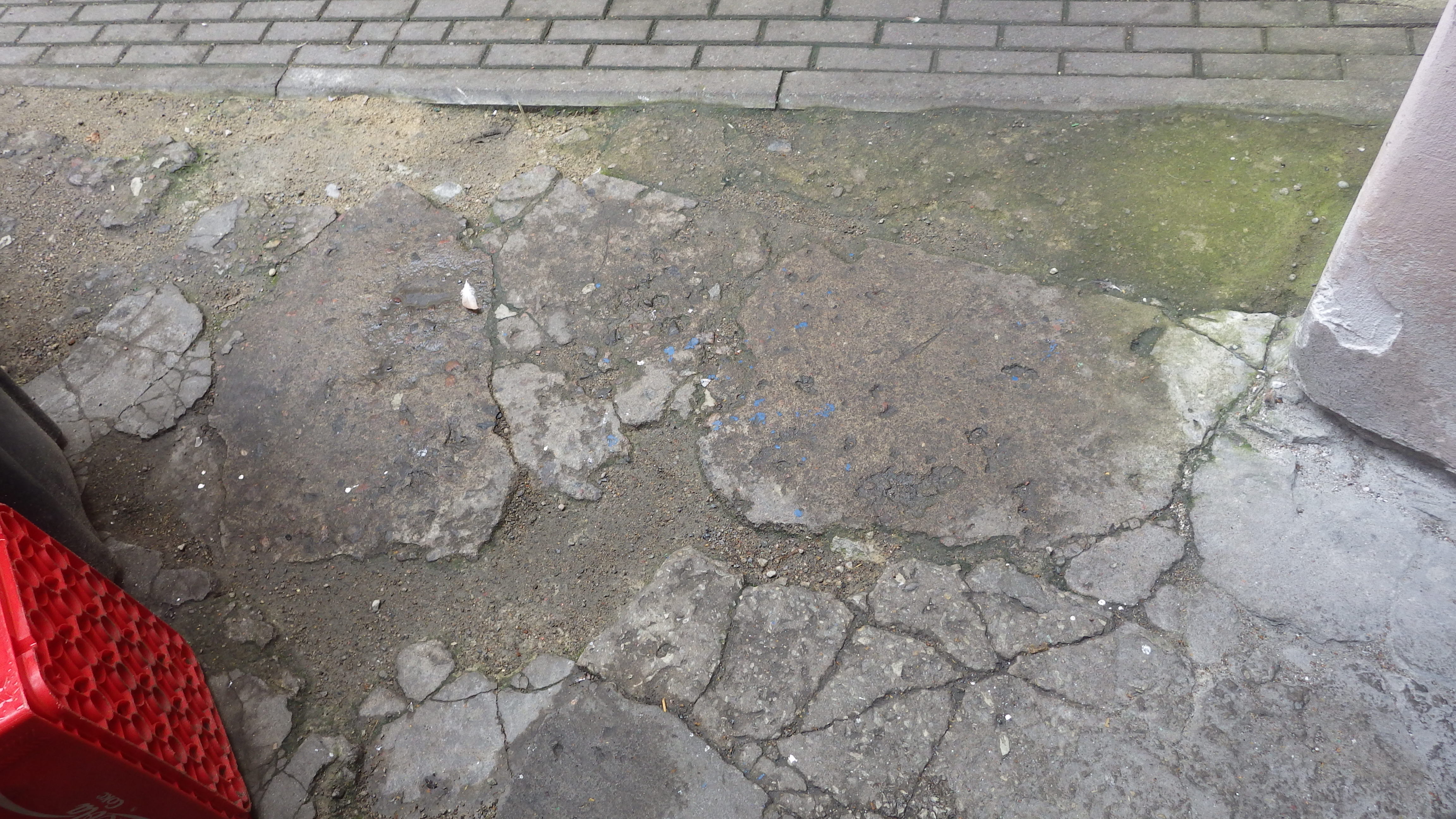 Lahtised tükid eemaldada, paigaldada võrk ja betoneerida 5-6cm paksuselt. Betoon peab olema tugev ja külmakindel. Kangialuses autod ei sõida, kuid veeretatakse prügikaste.