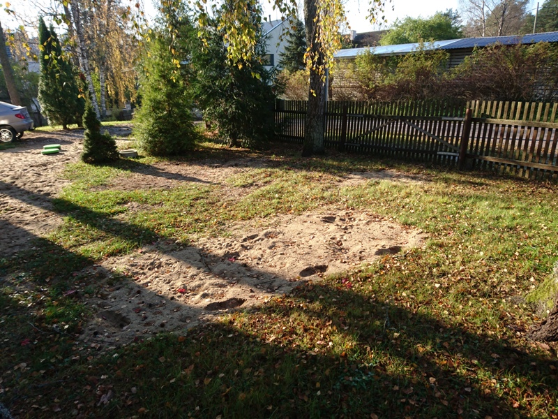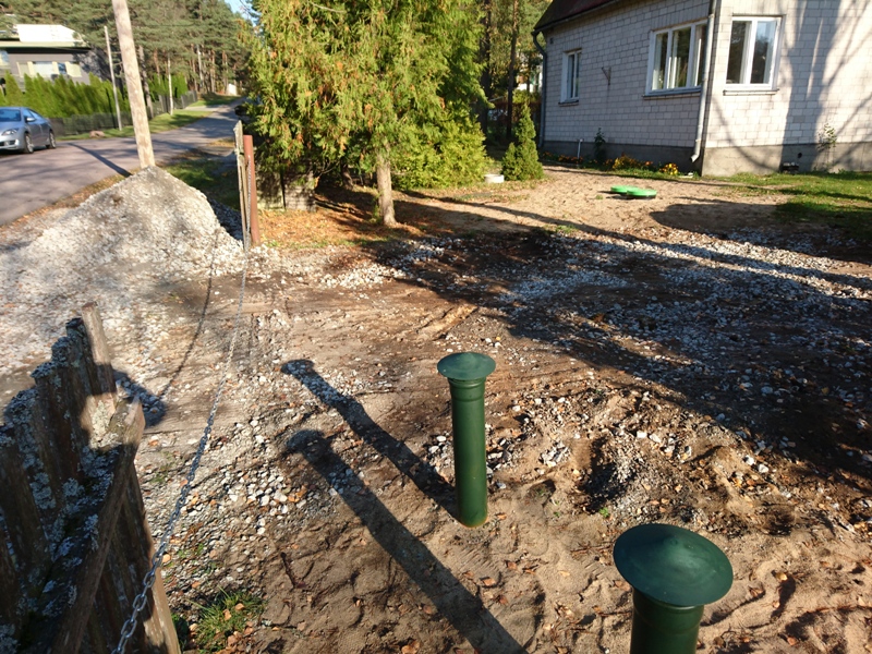 Mul oleks vaja natuke pinnast kaevata, nii umbes 30-50m2 ulatuses ja 30-40 cm sügavuselt. Hiljem täita see auk jämeda killuga. Umbes 4 t kildu endal olemas.