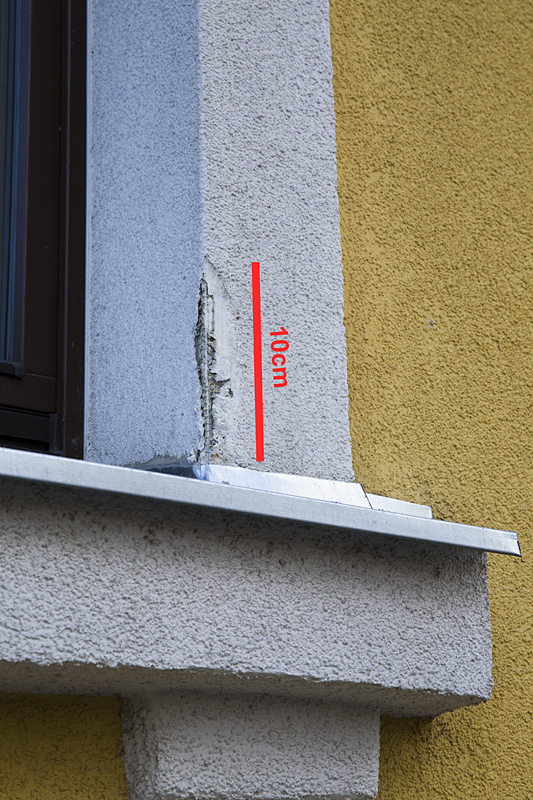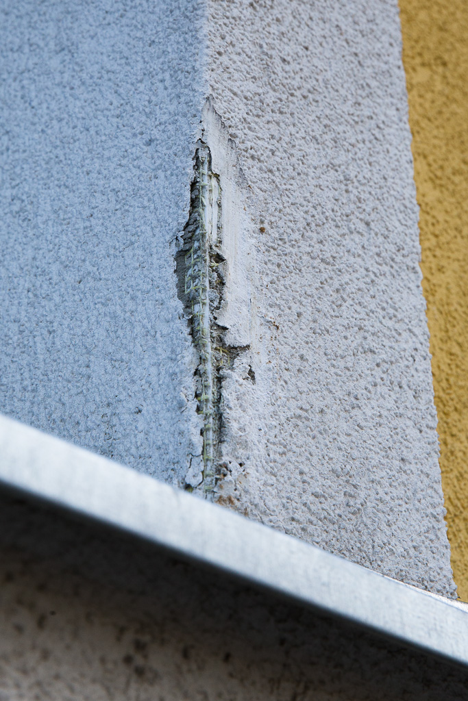 Kortermaja krohvitud fassaadil on vigastus (ca. 10cm pikkune).
