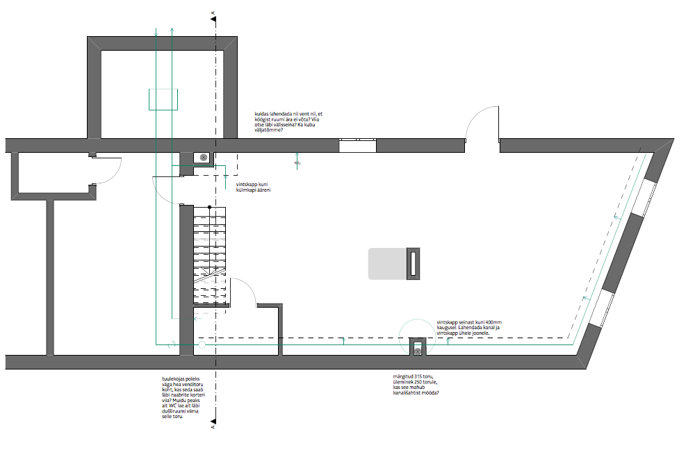 Esimesel korrusel on Aeroc seinad, mis krohvitakse ning viimistletakse. Paigaldada kipsist vahesinad, püstakud ning vendilatsiooni ümber kast (400mmx400mm ja 17jm).