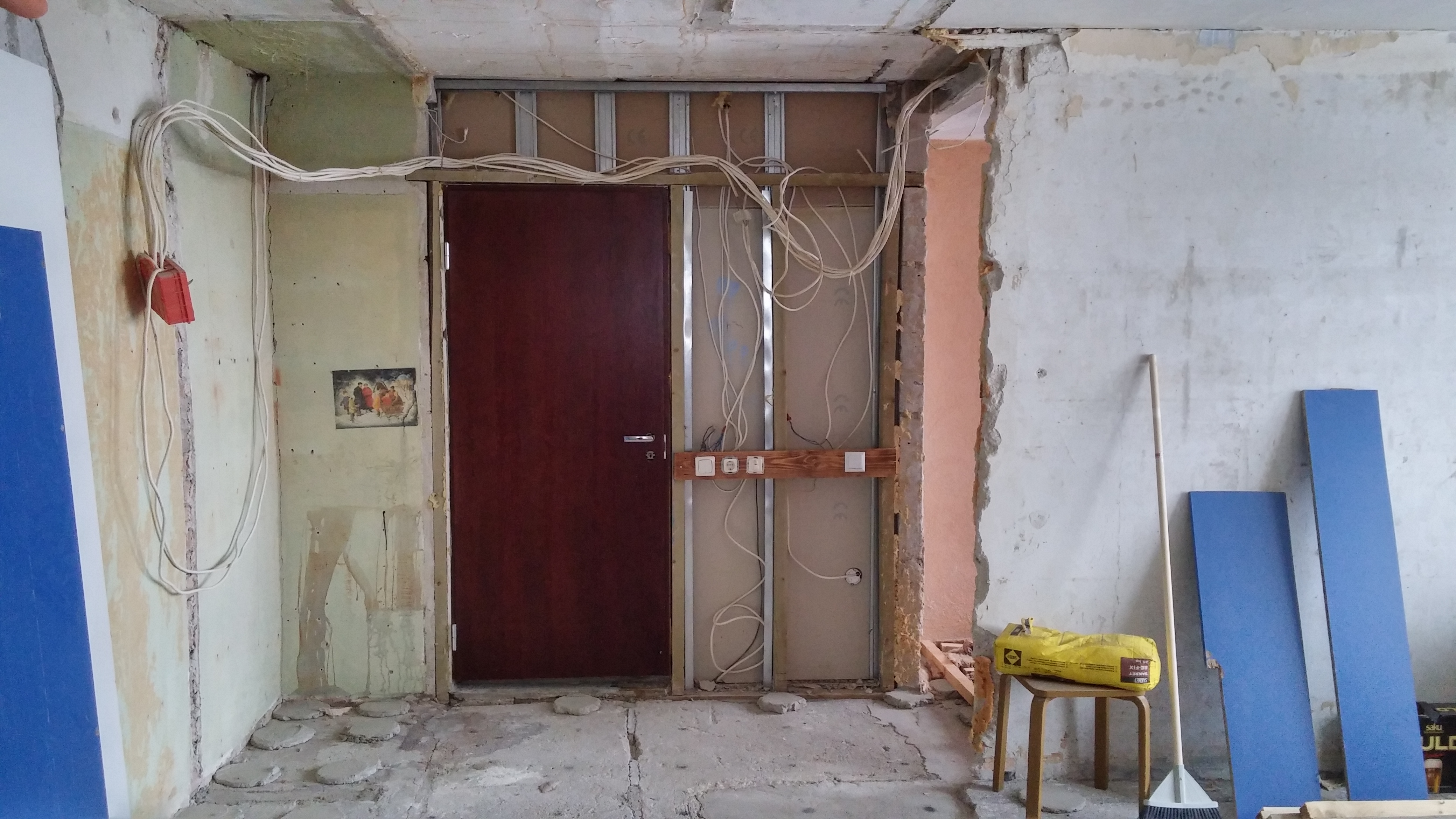 Ühe vaheseina juurdeehitus. Seinad siledaks krohvida või pahteldada. Osalt küprokiga seina katmine. Aknapõskede küprokiga katmine ja siledaks pahteldamine.
