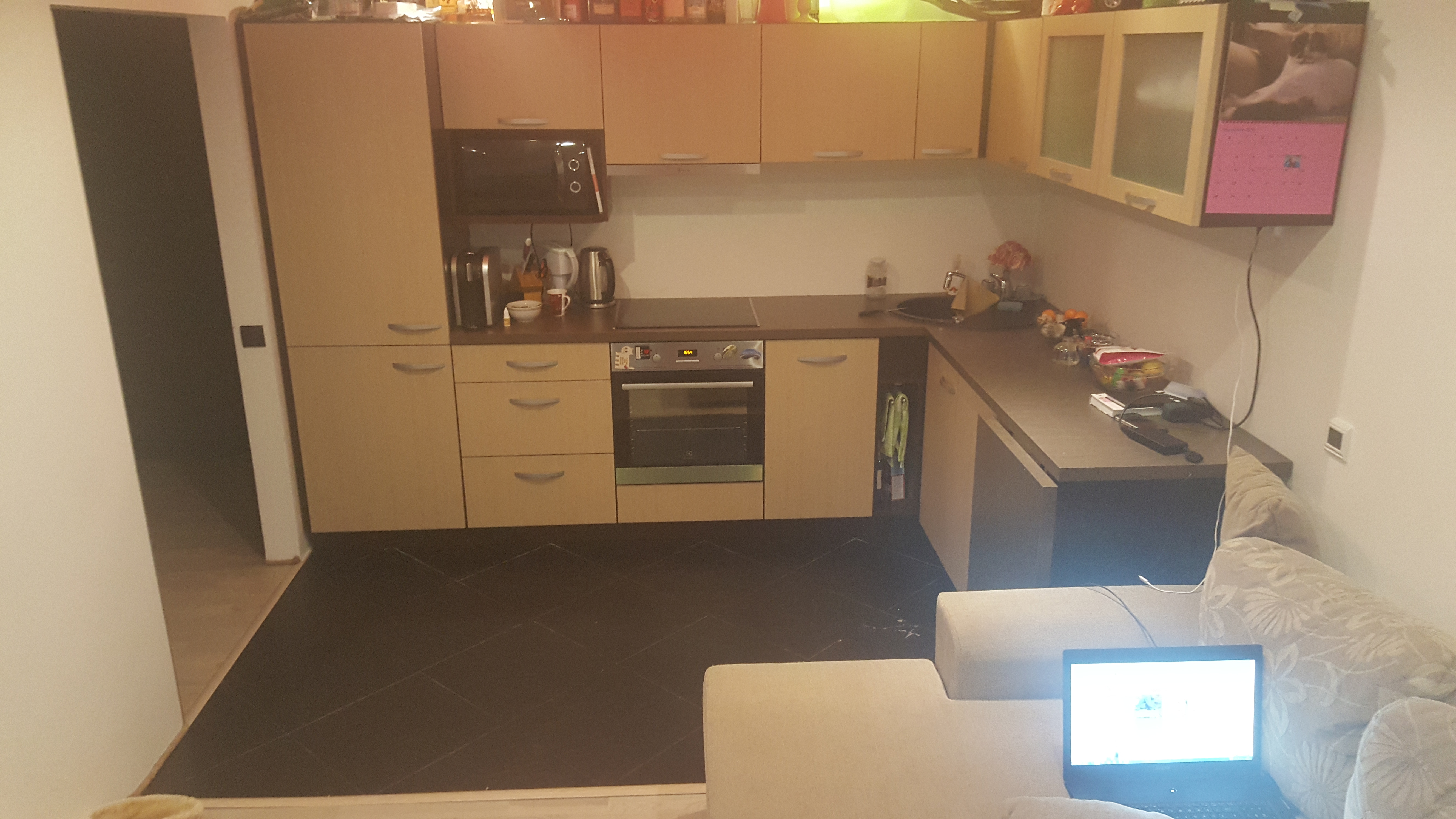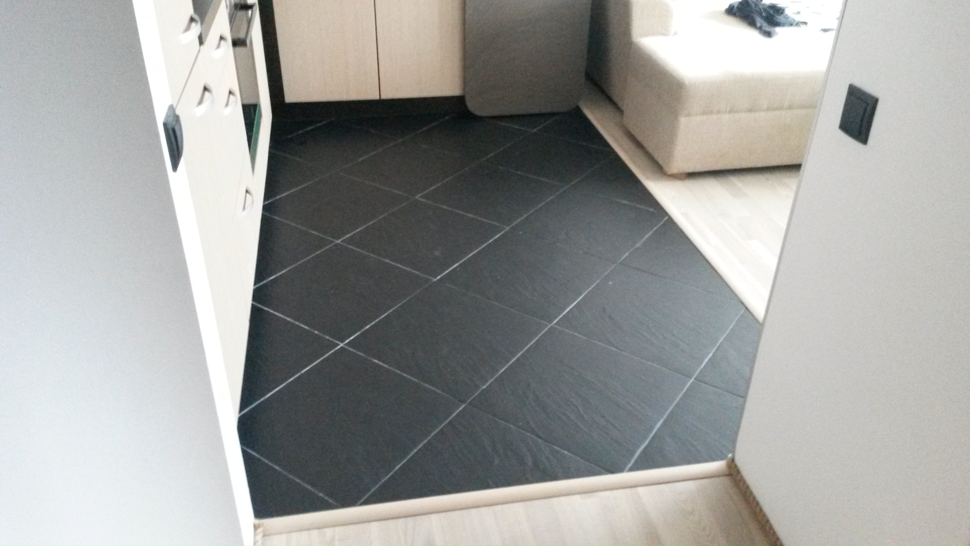 Oleks vaja siis eemaldada köögimööbel . 6 rm2 põranda plaate ülesse võtta siis vajadusel tasandus seguga parandata pinda siis uus plaat diagonaalis peale ja köögimööbel tagasi paigaldada .