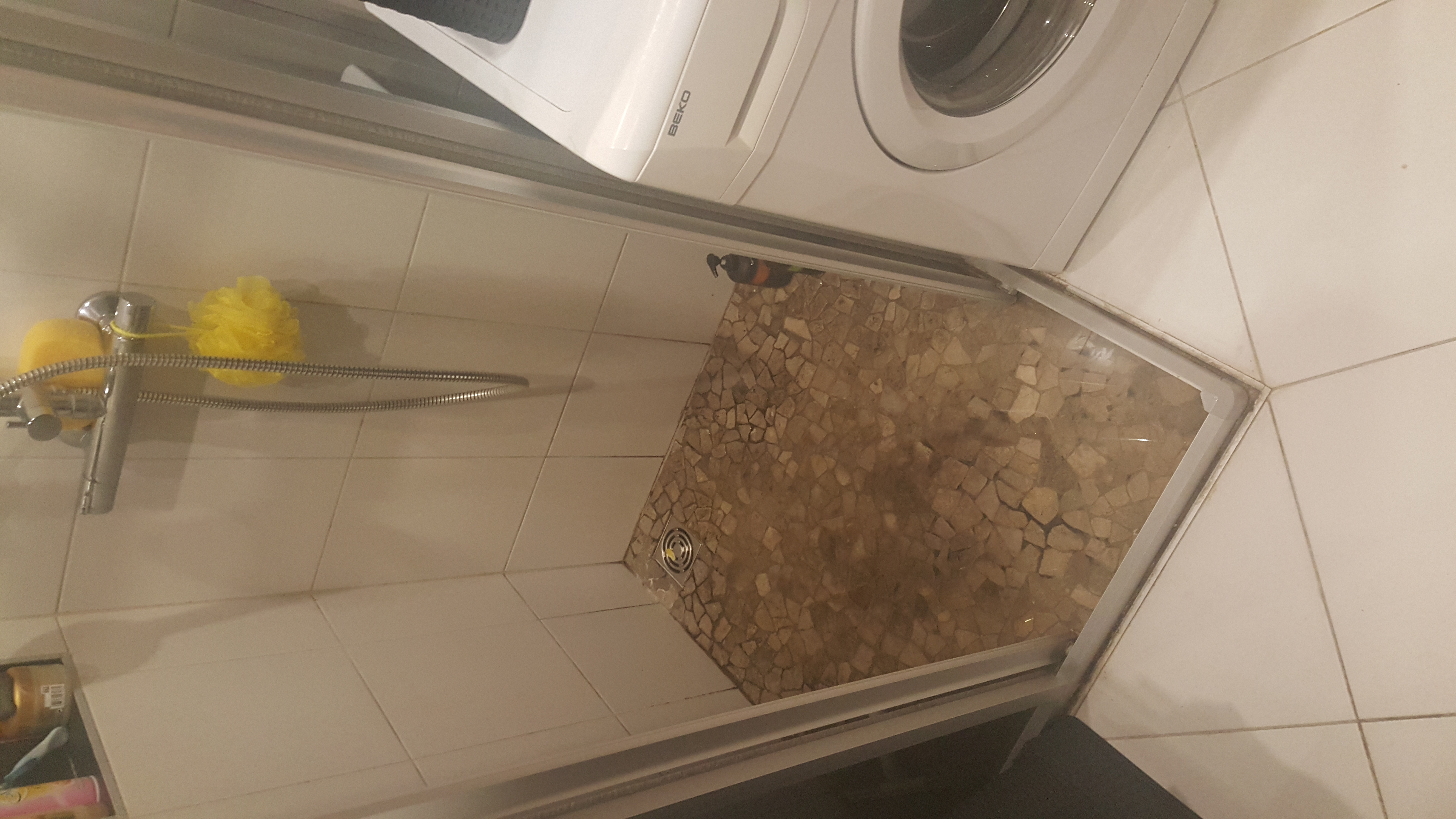 Siis tekitada kas servad ca 7x5cm täpselt sinna kabiini seinte alla we mingi muu lahendus misvälja pakutakse. Vana plaadi peale uus kalle koos nakkega et lahti ei tuleks trapi pool ja uus looduskivi plaat sinna peale .Trapi kõrgemale tõstmine ja muud asjad ka sinna sisse . Ja siis pesumasina taha korralikud läbiviikid seina peale ehk siis plaatida see ava mis lahti . Pesumasina ära vool sinna siis ja elektri pistik kõrgemale paigaldata .