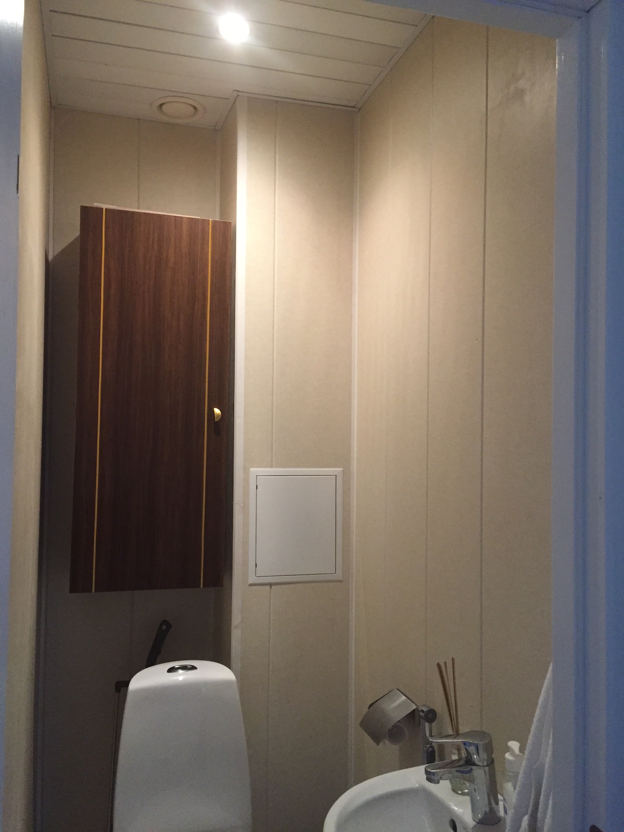 WC umbes 1,5 ruutmeetrit ja ripplagi tavakõrgusel.