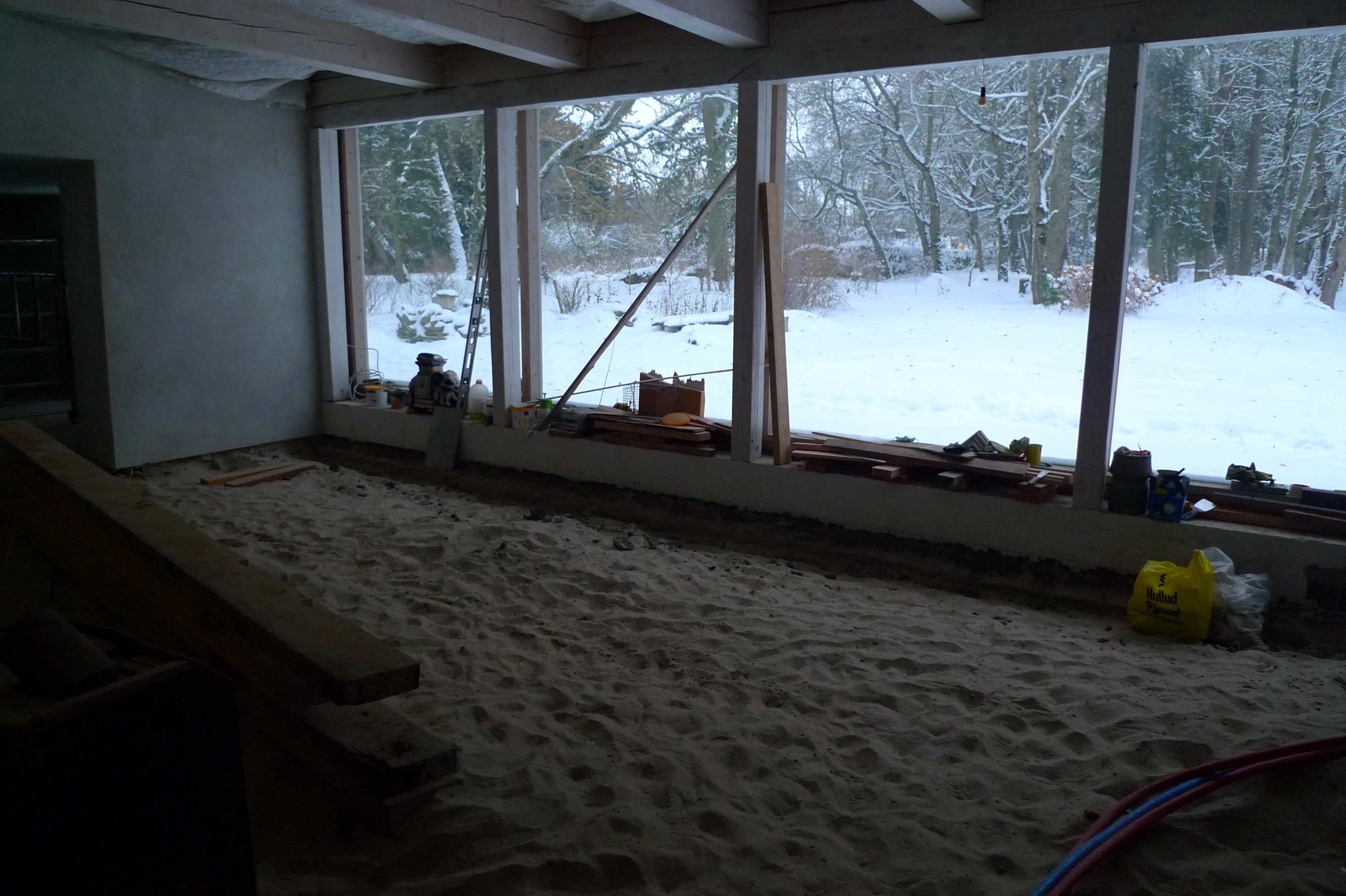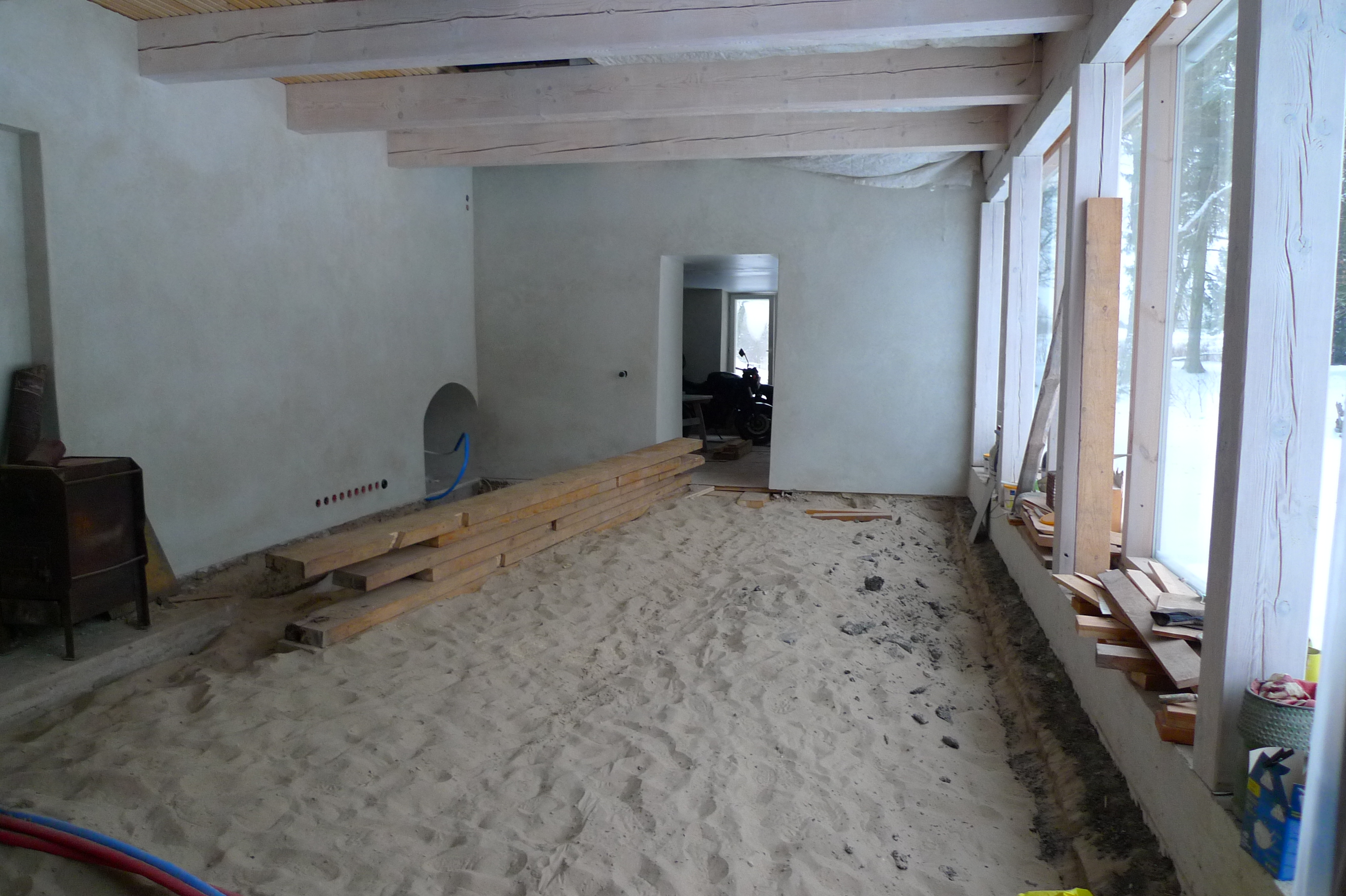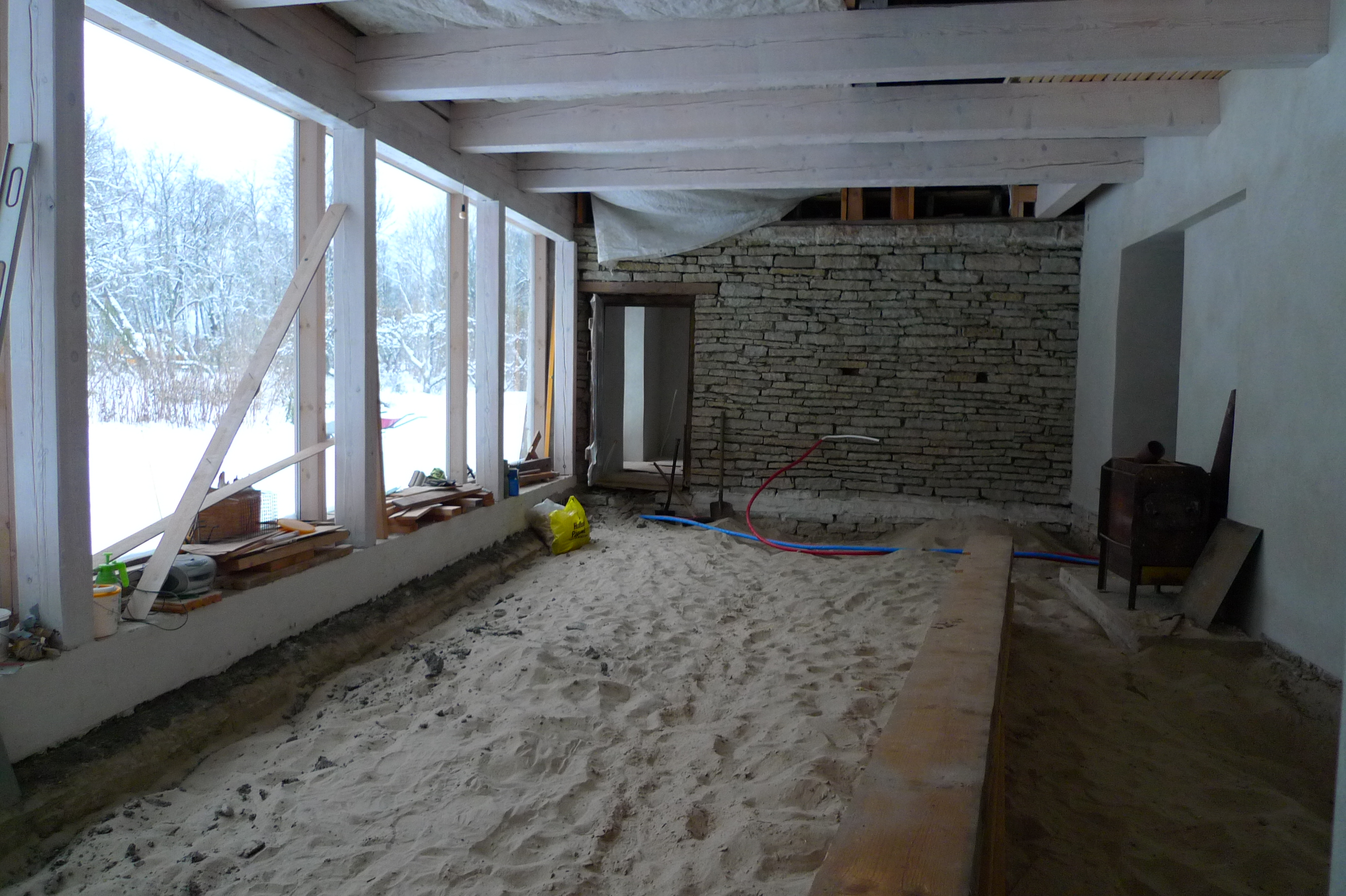 Käesolevas hankes on elutoa aluse augu täitmine liivaga (umbes 22 kuupmeetrit) ning põranda betoneerimine ja soojustus (20cm) elutoa ja töötoa ulatuses (61 m2).