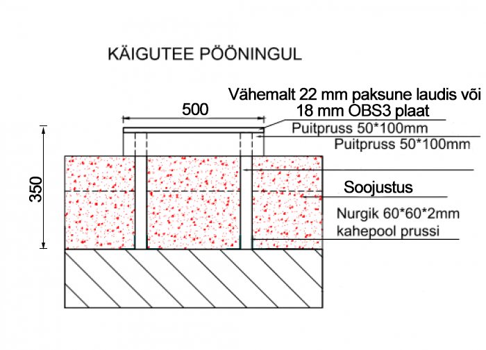 Käiguteede kogupikkus on ca 70 meetrit ja see peab olema vähemalt 50 cm laiune