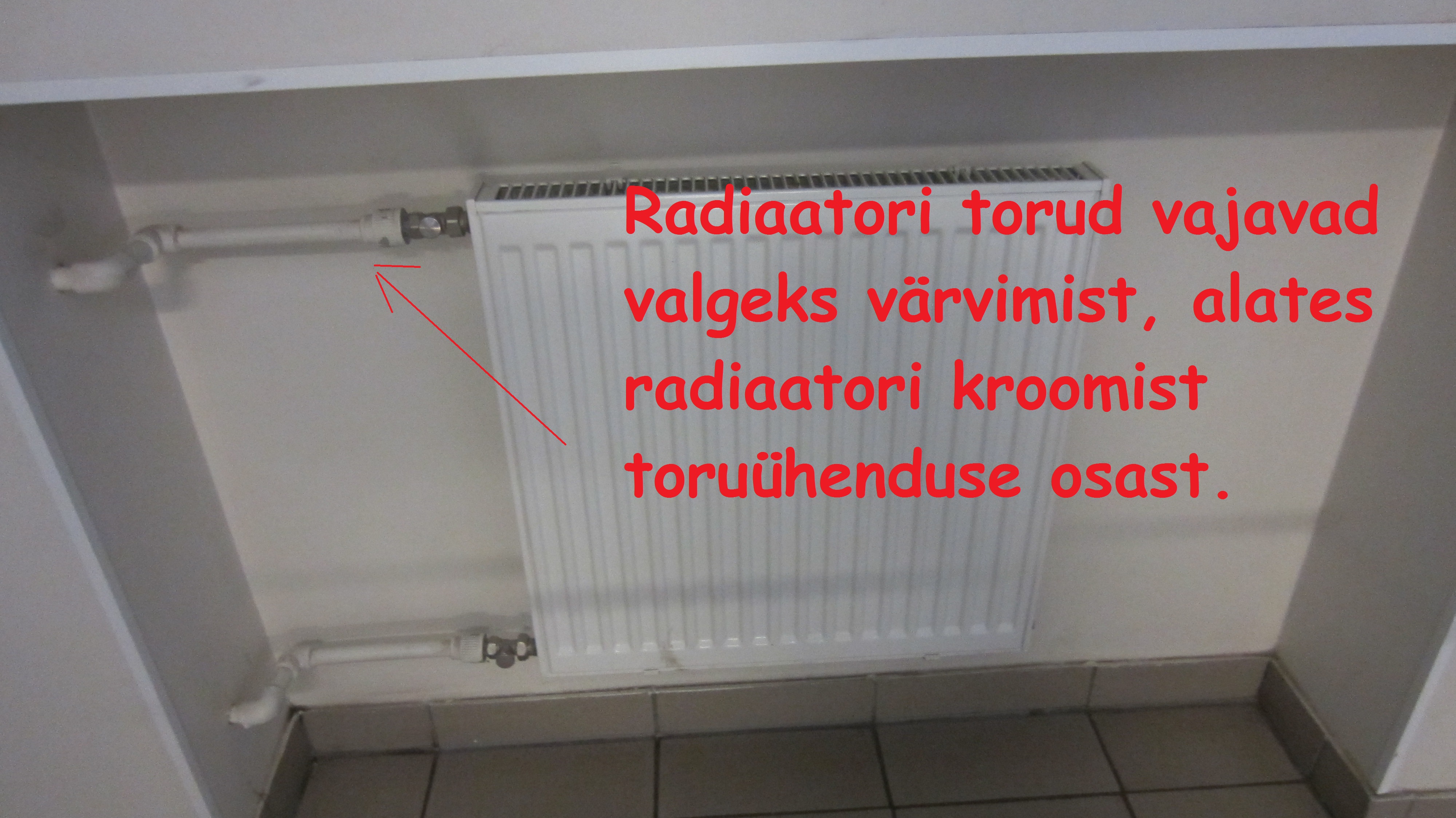 7) Radiaatorite torud tuleb värvida valgeks. Radiaatoreid on 5 tk.