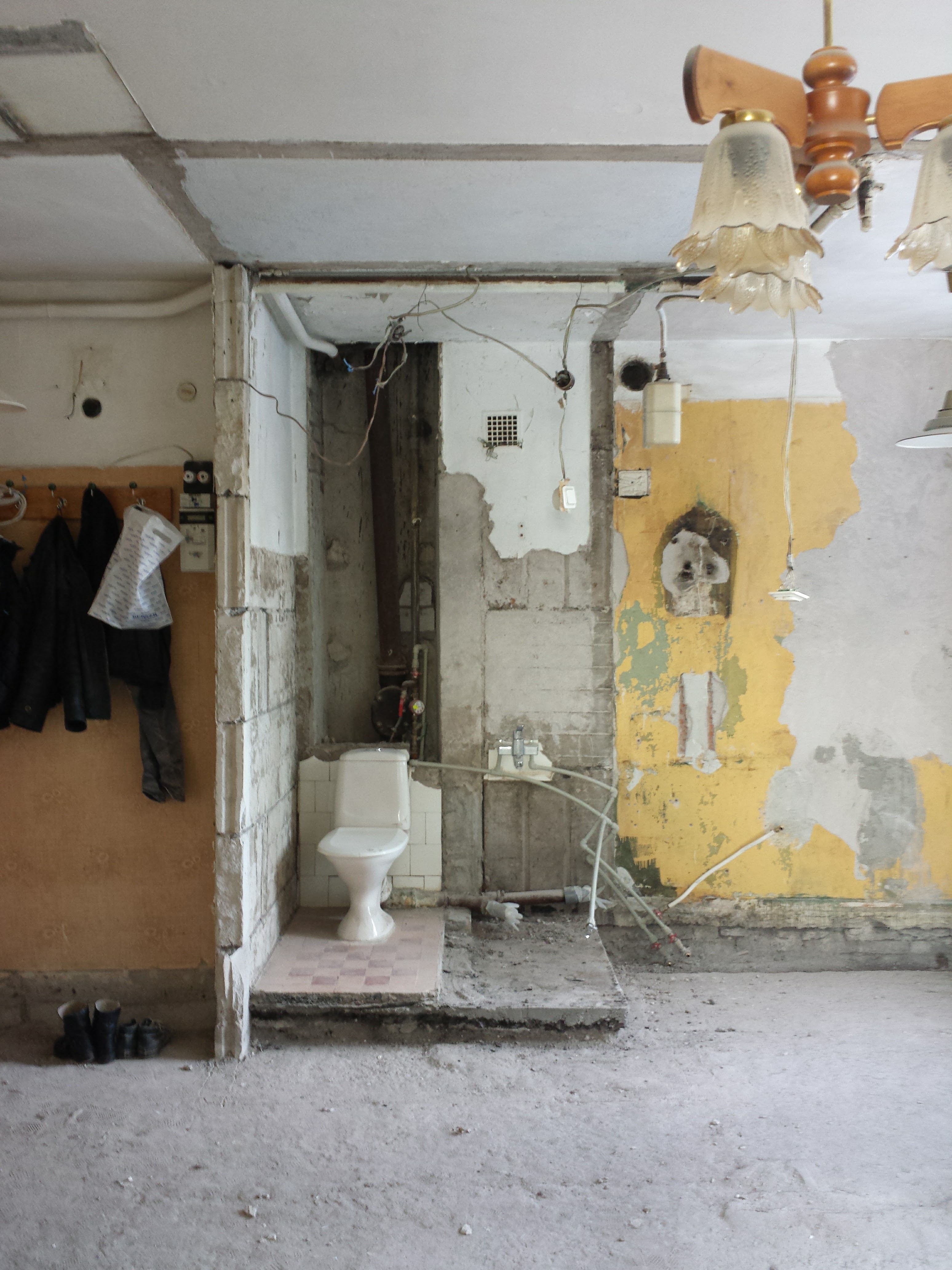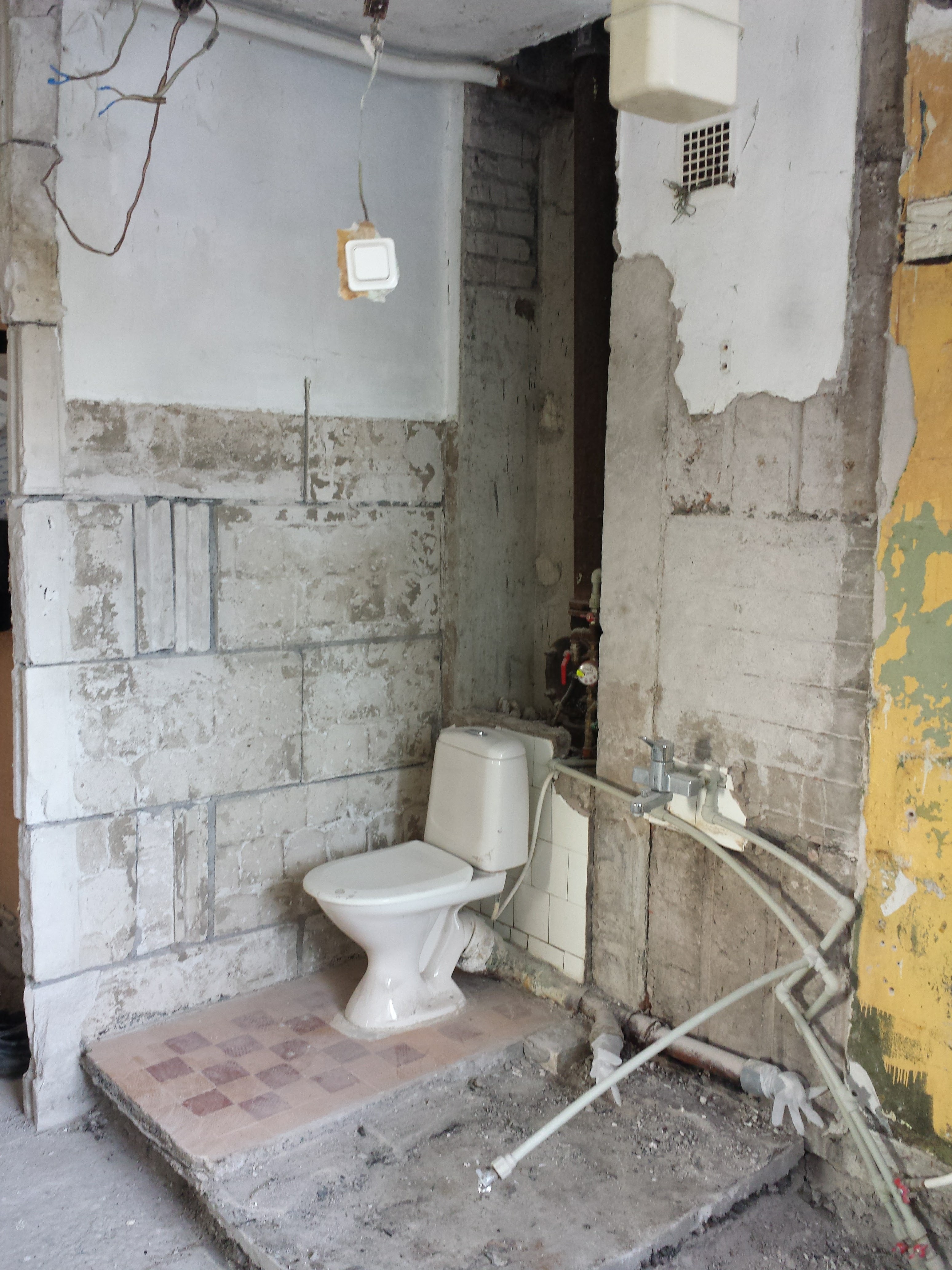 1. Olemasoleva püstakuseina (wc poti taga) ja põranda lõhkumine (1,7 m2) nii palju kui vajalik.