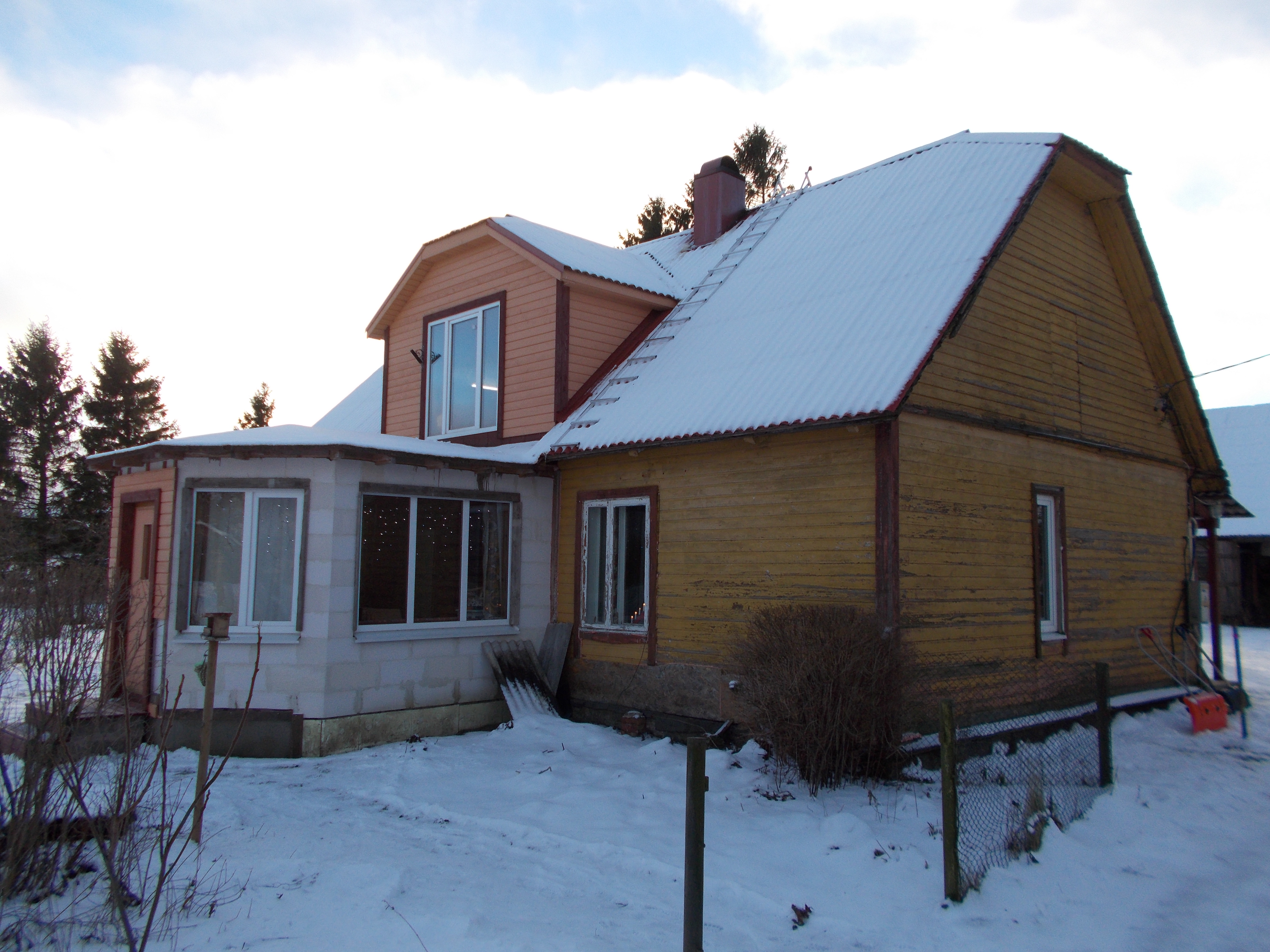 Kohati on maja alumine palk asendatud FIBO plokiga (enamasti). Veranda on tehtud AEROC kivist.