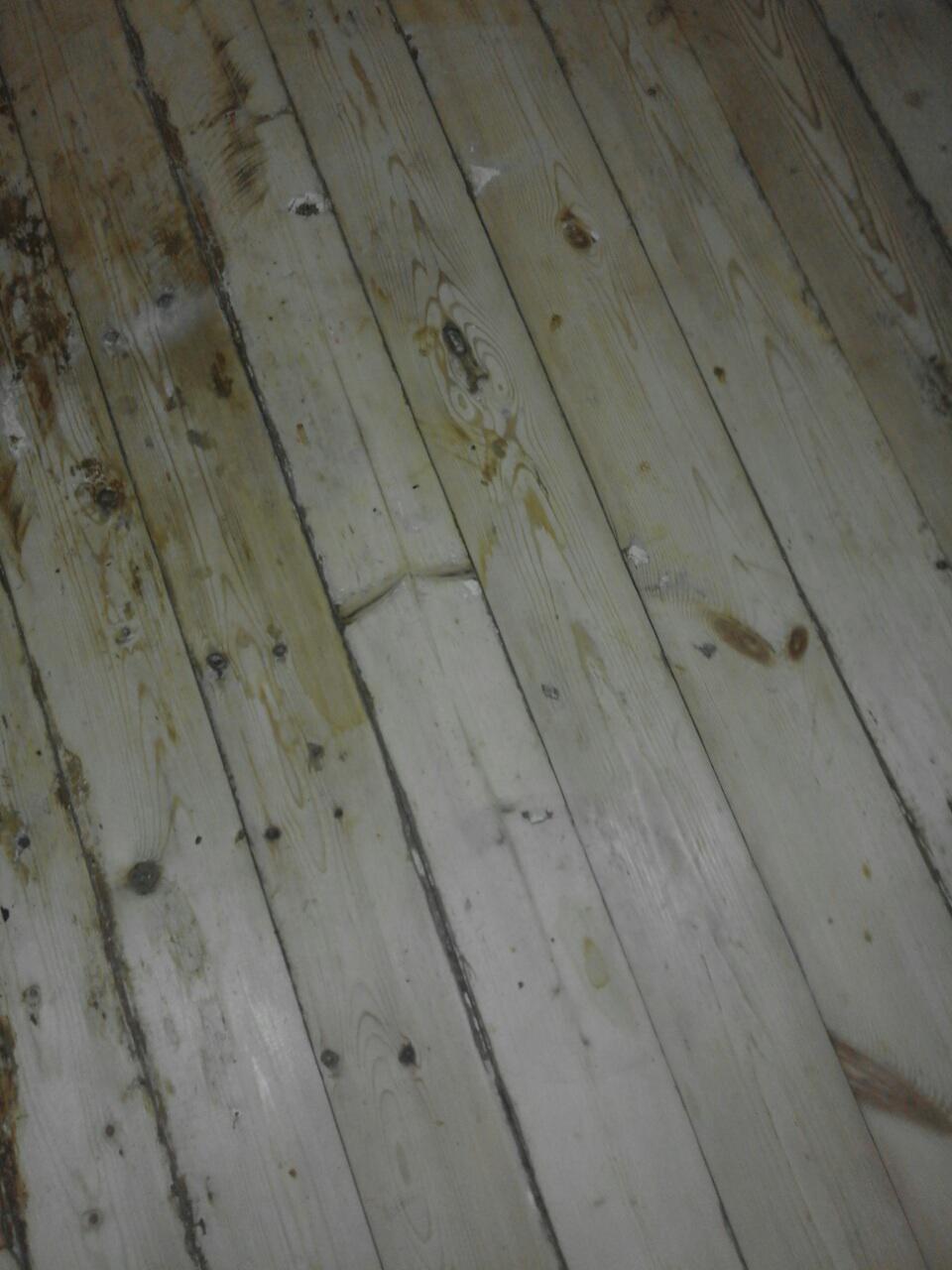 Vana mitmekordne paks värv on põrandalt eemaldatud. On ka proovitud lihvimist tavapäraseima kättesaadava lihvimismasinaga. Vaja oleks profitöö lihvimisriistadega (k.a. masin mis pääseb ligi nurkadele ning radiaatori alustele) see pind ära lihvida. Lisatud piltidelt on näha milline enamus põrandast on ning kahel pildil näha, kus on proovitud lihvida (veidi üle 1 m2 on lihvitud).