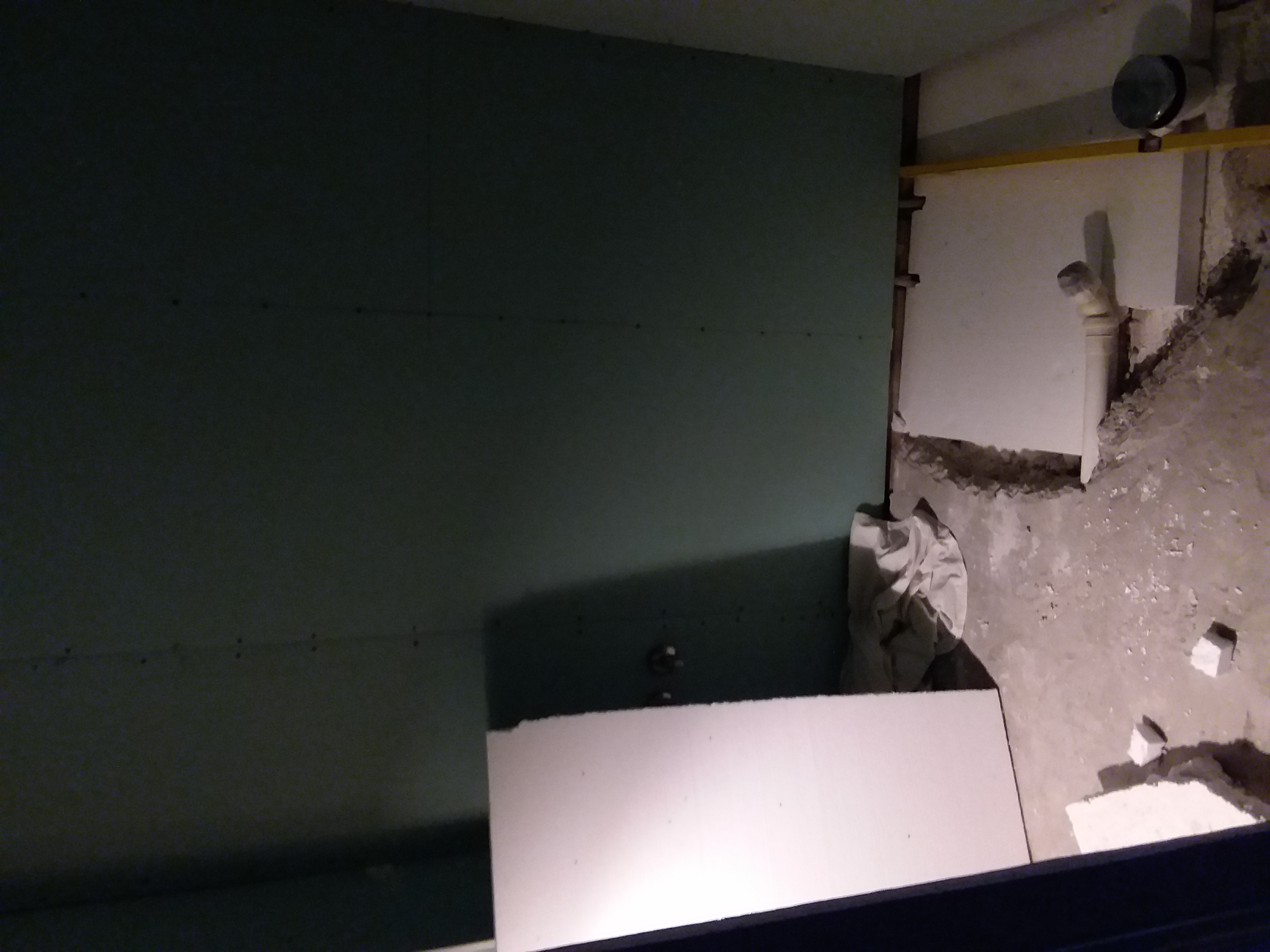 Kipsplaat on seinas, vaja hüdro tõkkega veel üle teha enne plaatimist.