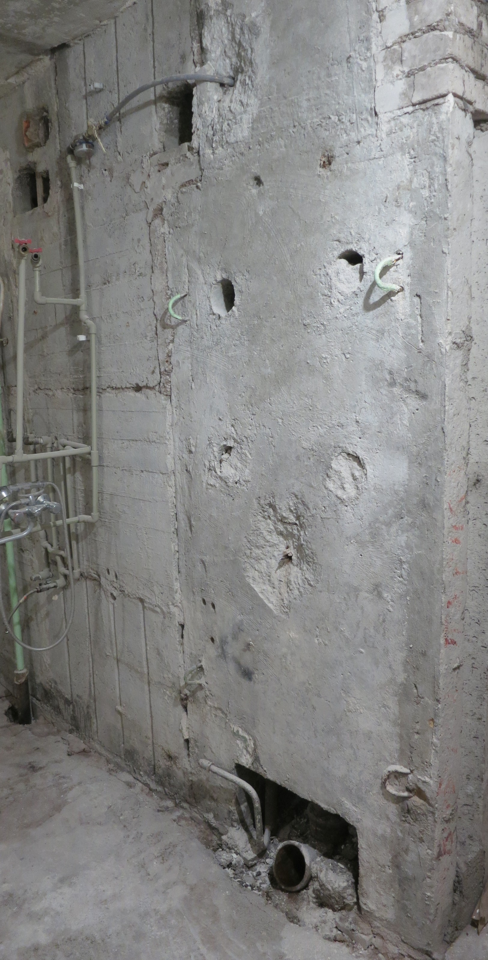 Seinad. Kolm seina ehitada vannitoa kipsplaadist, kinnitatud 66mm metallprofiilile, mürasummutusteip ja kivivill. Seinas tugevdusprussid vannitoa uksele ja duššinurga ustele, tugevdus valamu, gaasiveesoojendaja, el.rätikukuivati ja köögikappide kinnitamiseks. Neljas sein (olemasolev) krohvida või kleepida kipsplaat. Hüdroisolatsioon (terve vannituba).