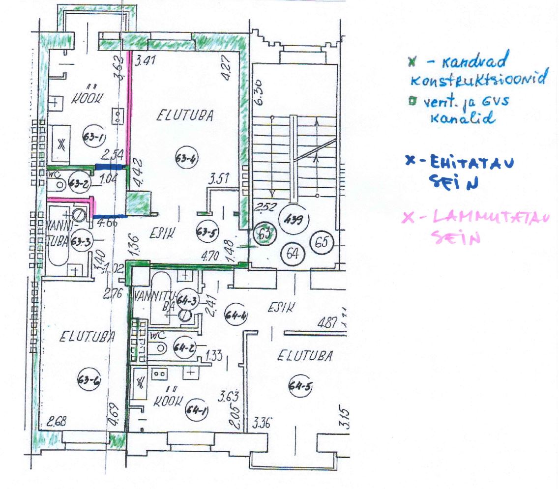 - Elutoa ja köögi vahelise mittekandva seina lammutus (ca 3,6 x 3,5m)