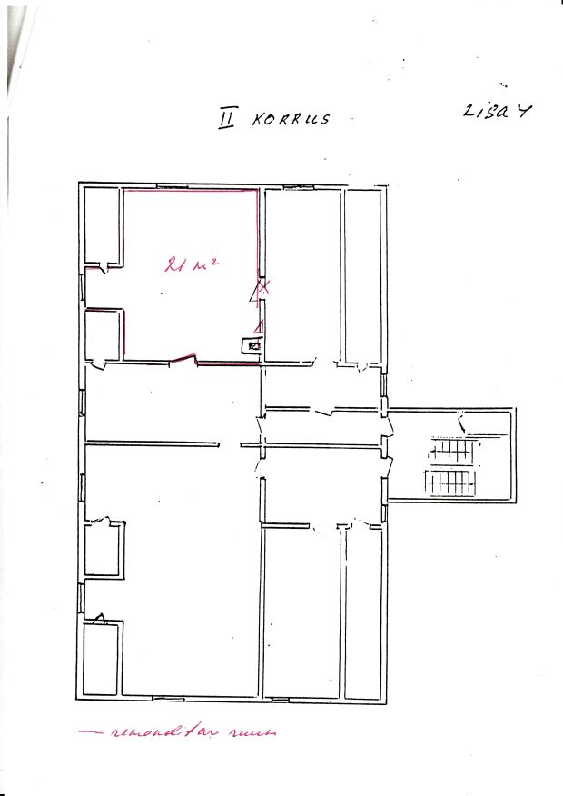 remonditava ruumi suurus on 21 m2, remontida tuleb seinad, lagi, põrand. tööde hulgas on ka vana eemaldamine.
