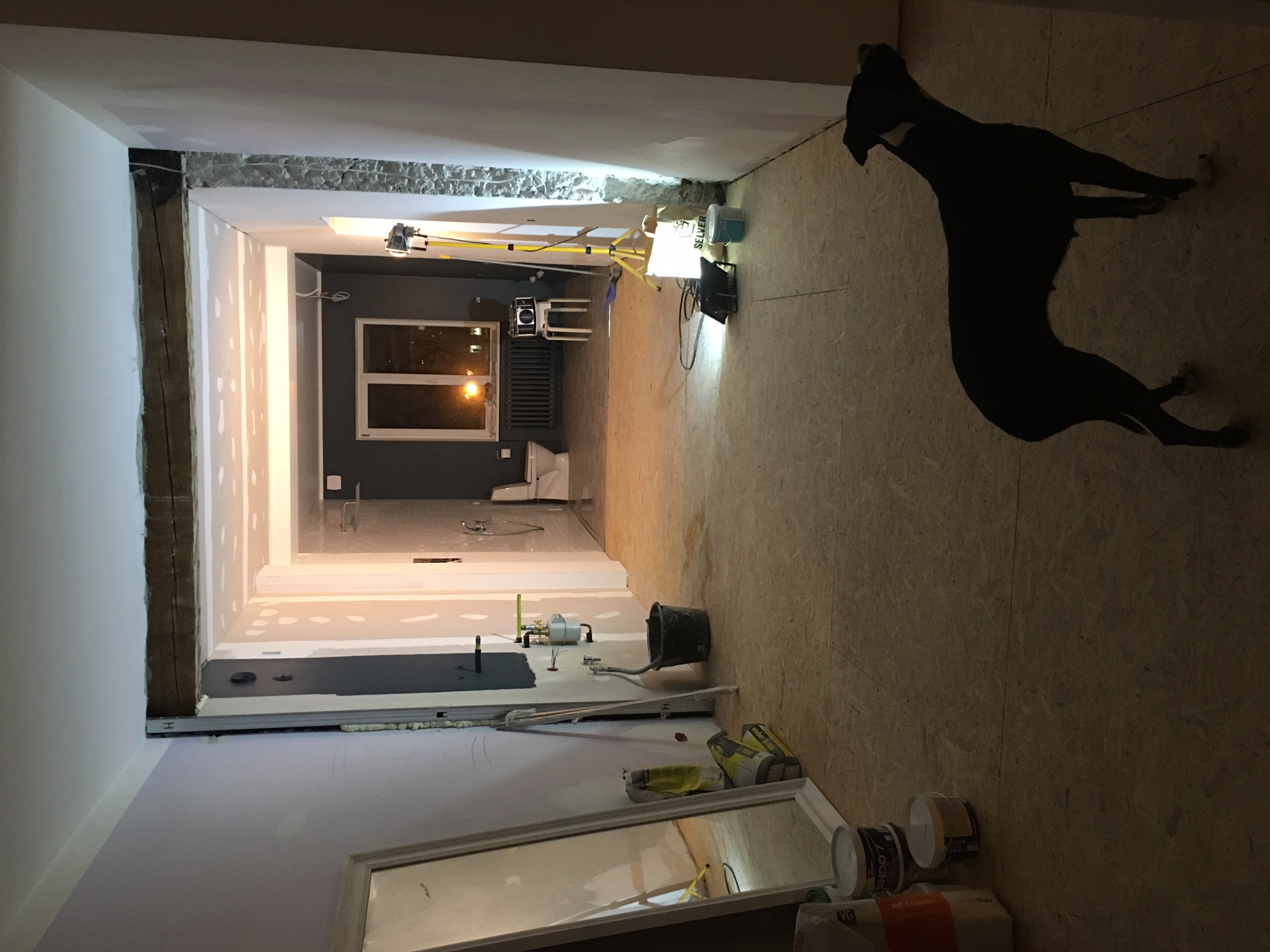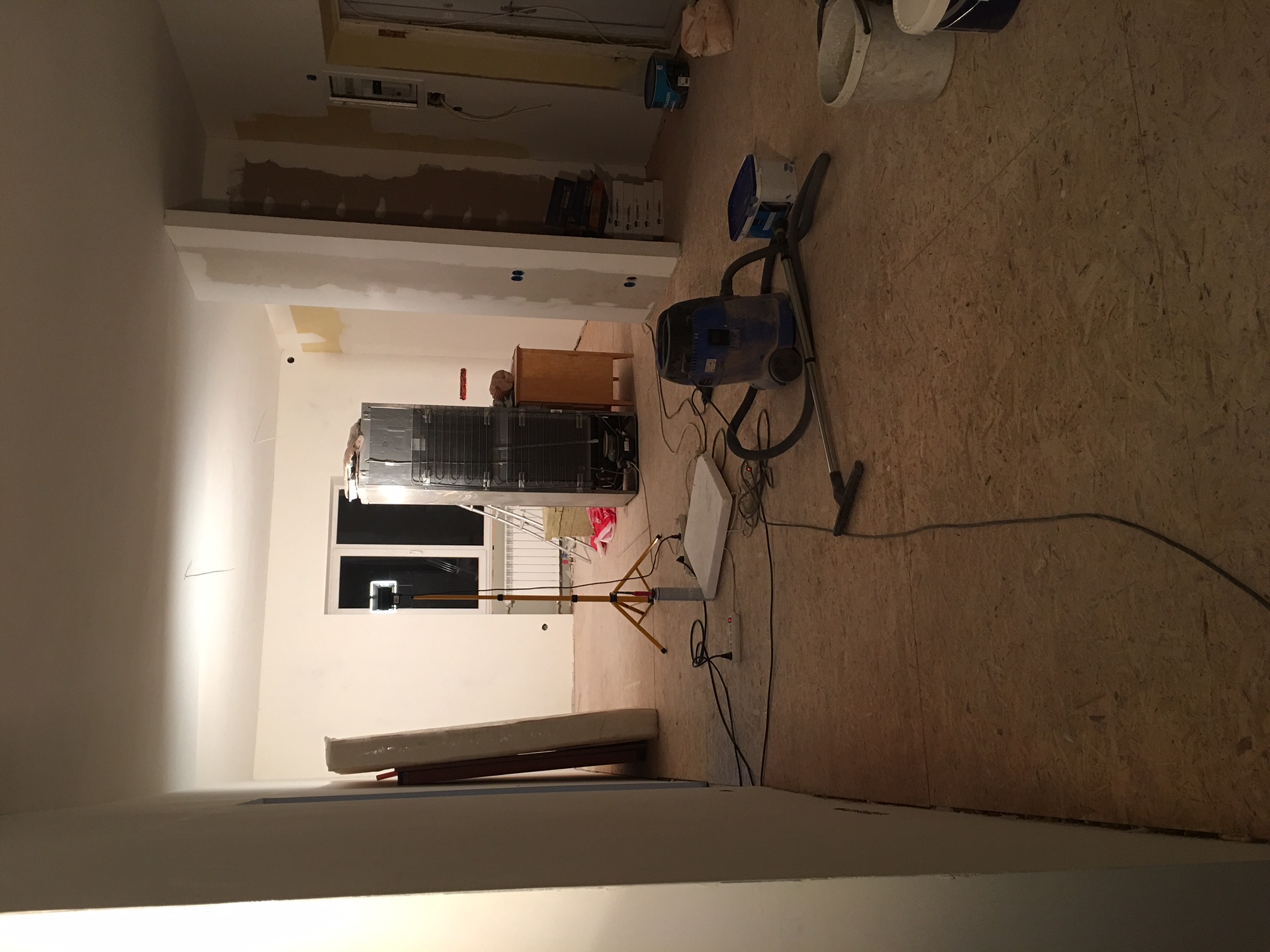 Hetkel on pea kõik laed pahteldatud, ka suurem osa seintest. Vaja on veel vähesel määral krohvida (pilt koeraga) seina äärt ja lage, ning pahteldada. Peale seda on seinad ja laed vaja lihvida, kruntida ning värvida.