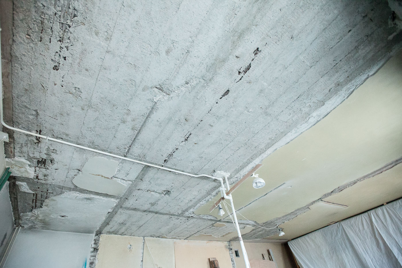 Korteri betoonlage vaja krohvida umbes 25m2 ulatuses (kogu ruum 50m2). Vana lahtine krohv eemaldatud ja pind nakkedispersiooniga töödeldud. Krohvikihi paksus umbes 10-20mm. Ruumi kõrgus umbes 3,4m. Asukoht Tallinnas, Vabaduse väljak 6.