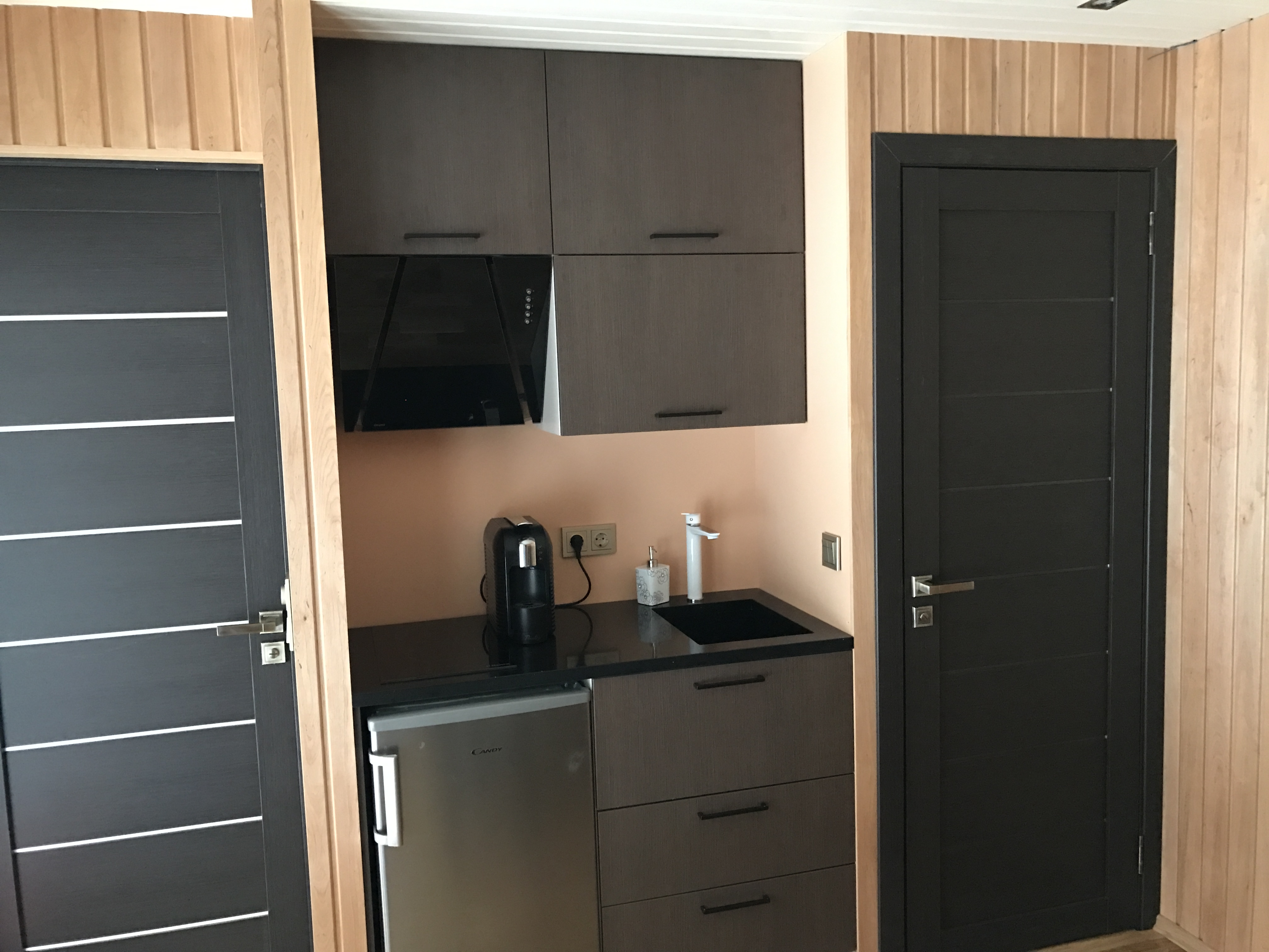 Tegemist on mobiilsete konteinersaunade mööbliga ja köögimööbli suurus on 1350mm lai, 600mm sügav ja 2300mm on maast laeni. Kahe osa tasapinna vahe on 500mm.