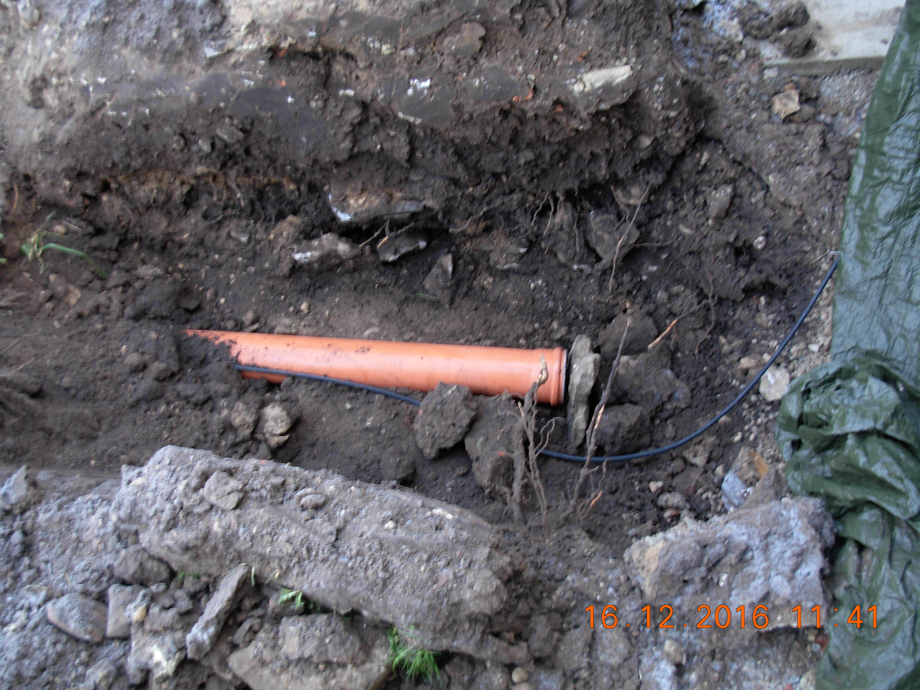 Septik ja imbväljak on valmis ehitatud. Septiku väliskanalisatsioonitoru ots on toodud maja seinani, toru otsa ja maja seina vahe on 110cm. Seina taga asub wc, kus wc pott asub umbes 70cm kaugusel seinast. Wc põranda suurus on 170cm x 210cm (3,6m2). Pool wc põrandast on lahti kaevatud (põrand lõhutud ja muld välja veetud).