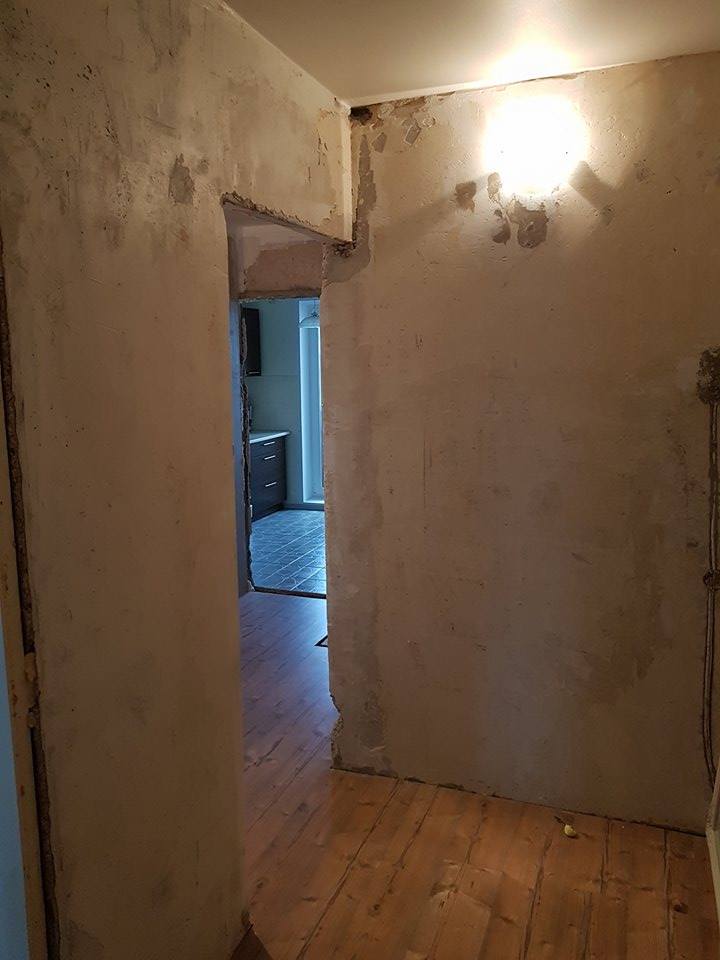 Tegu paneelmaja betoonseintega, mis on kohati vaja ka sirgeks ajada.