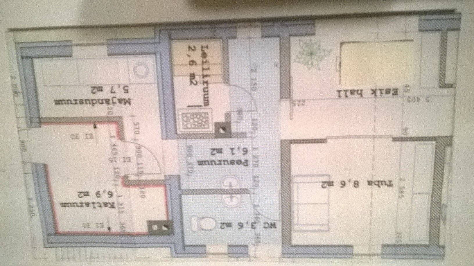 Pesuruum ja majandusruum (osaliselt)- kipsplaat paigaldatud 6.5 m2 (1kord pahteldada ja 1 kord kruntvärviga värvida).