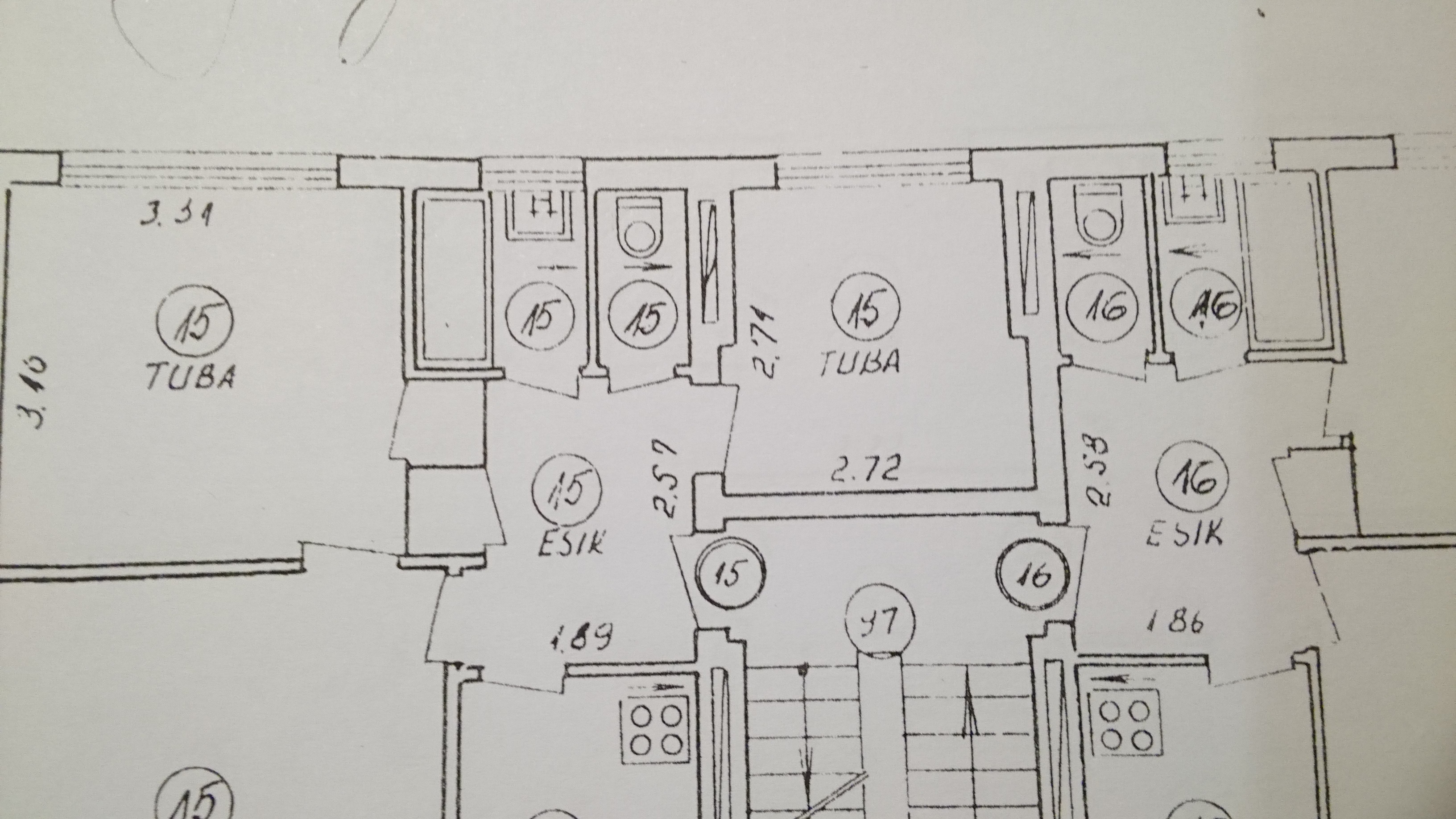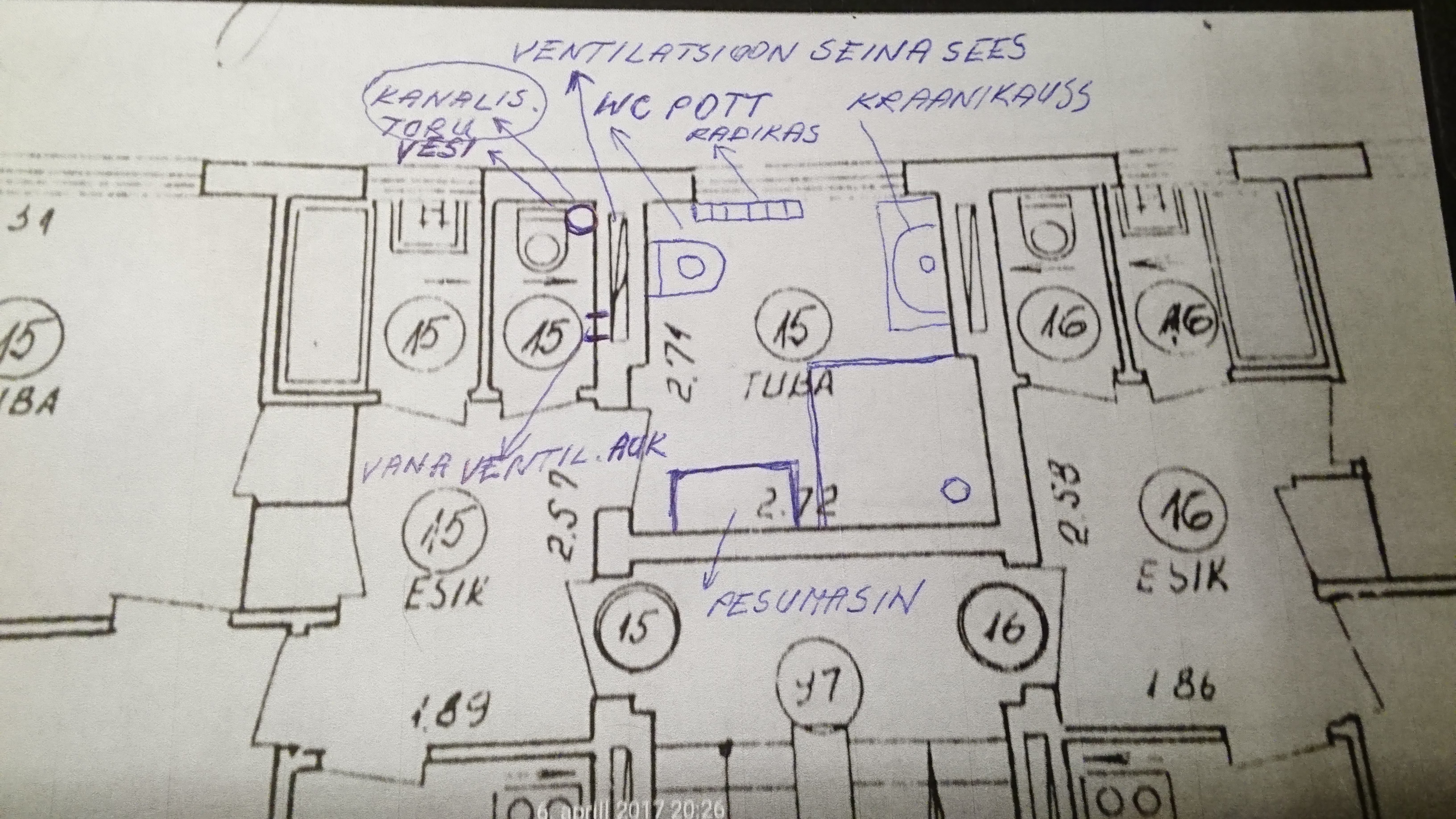 Vana wc-vannituba jääb majandusruumiks ehk panipaigaks kuhu tuleks ka seinale elektriboiler. Sealt saab uude vannituppa vee ja kanalisatsiooni.