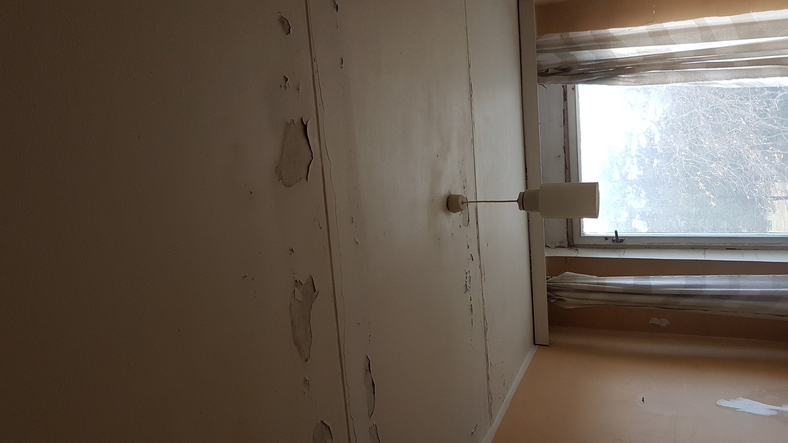 Vana paneelidest korteri lagi, kokku 25m2. Paneelid on kumerad ja ka kõrguste vahe võib mõnes kohas kõikuda 1-1,5cm. Seega ka lae äär lainetab.