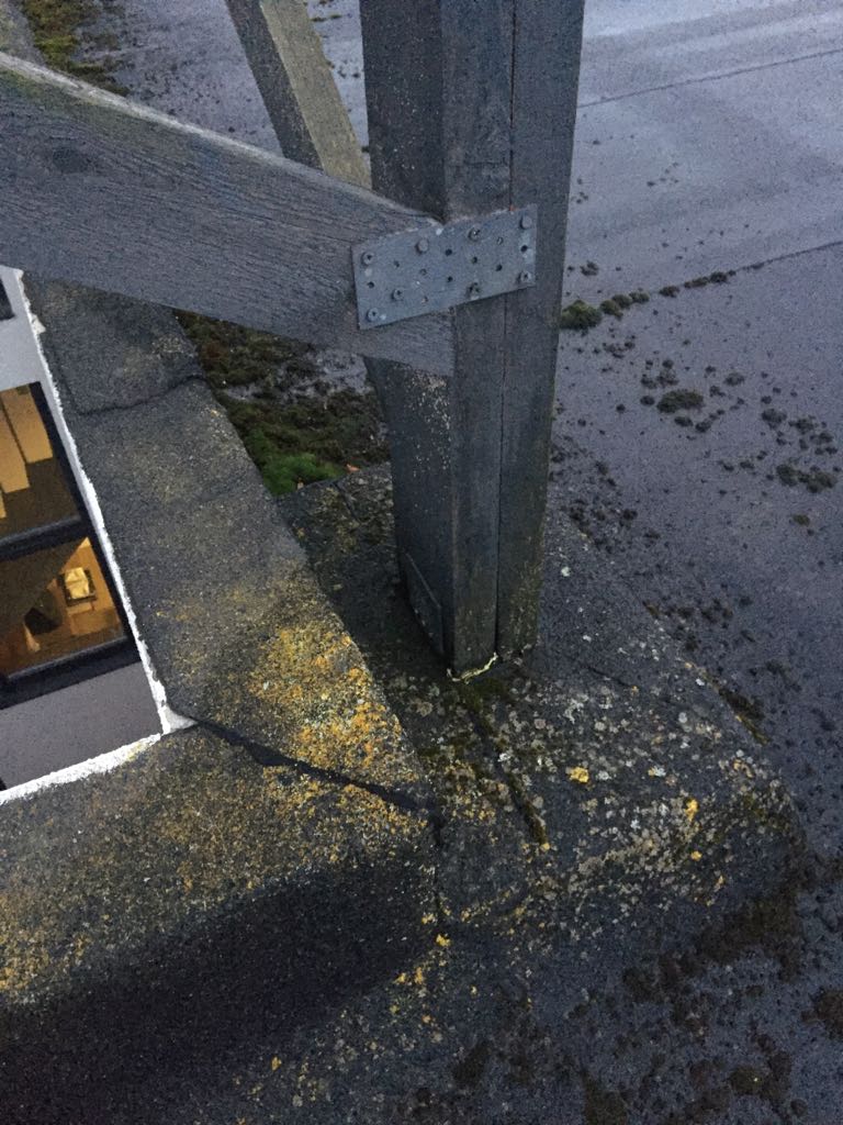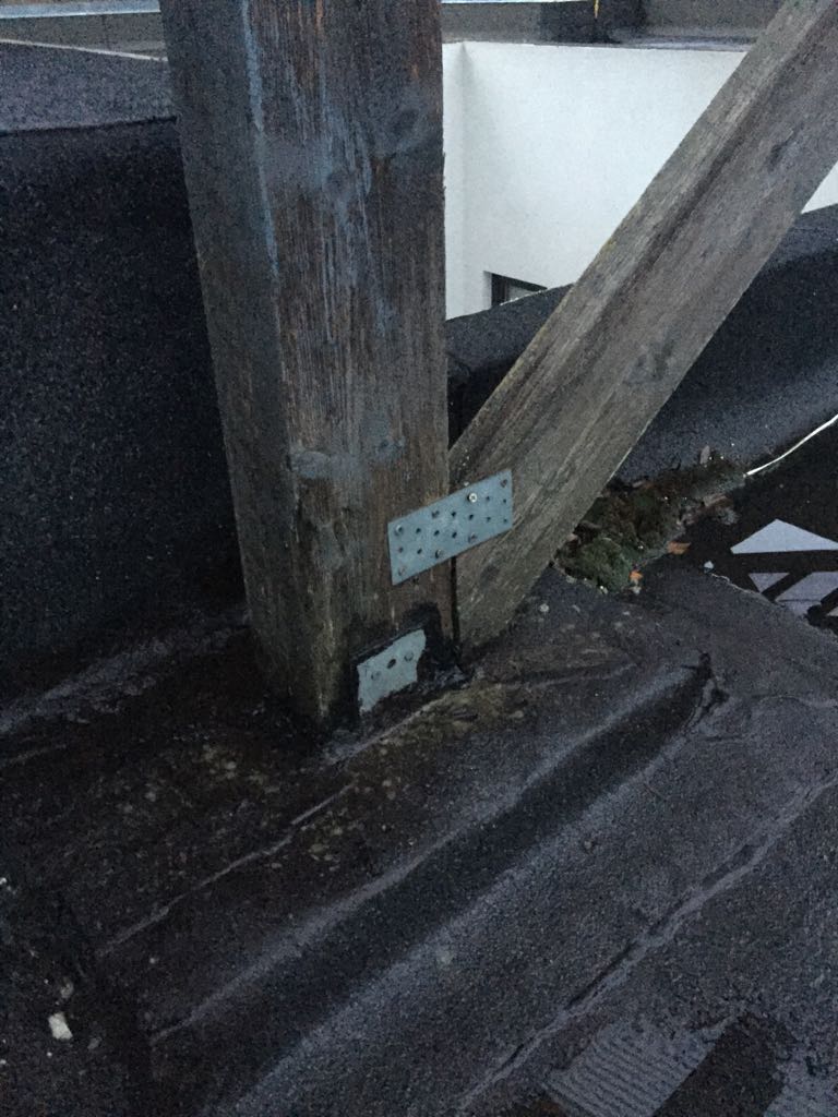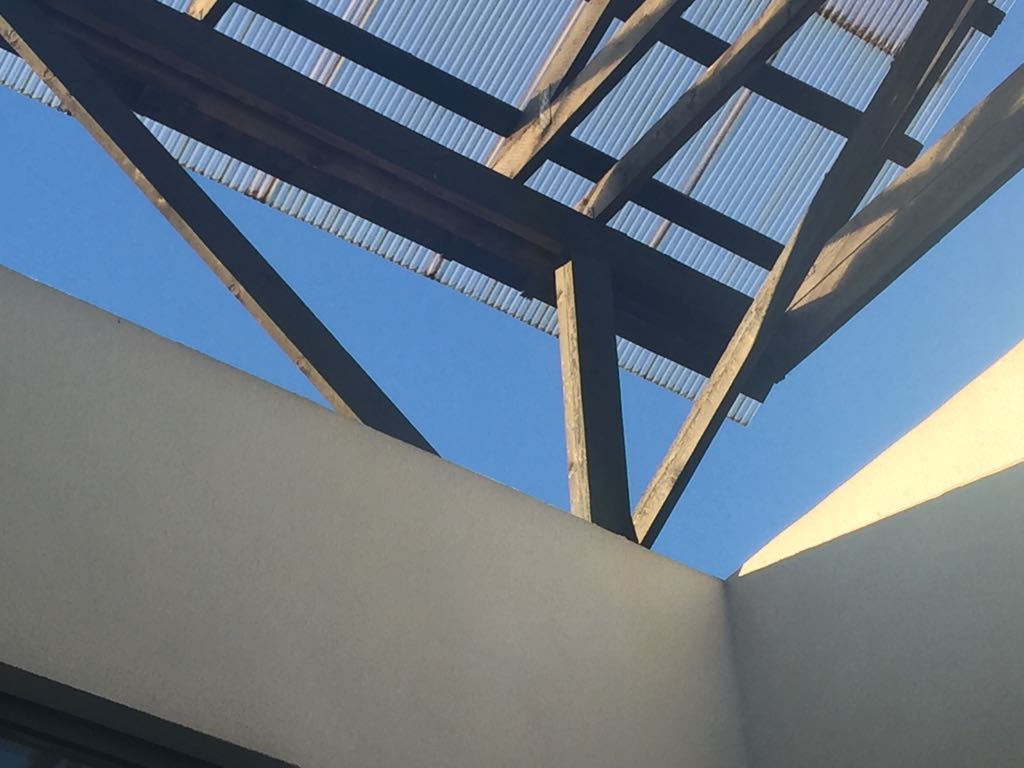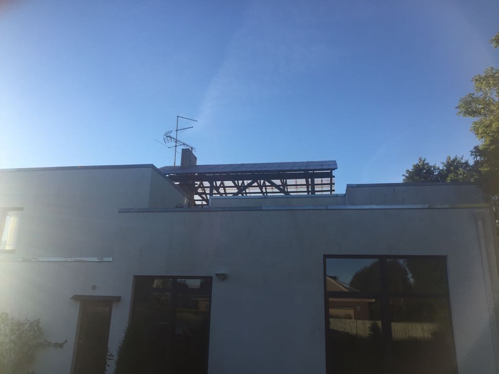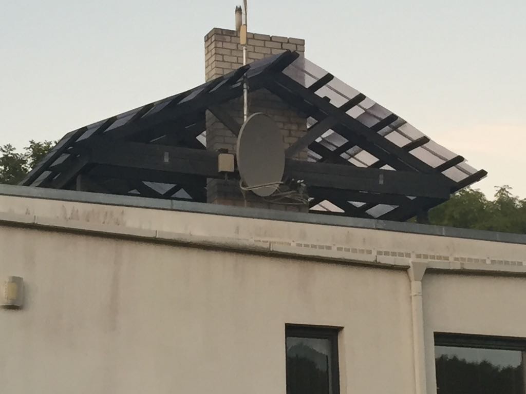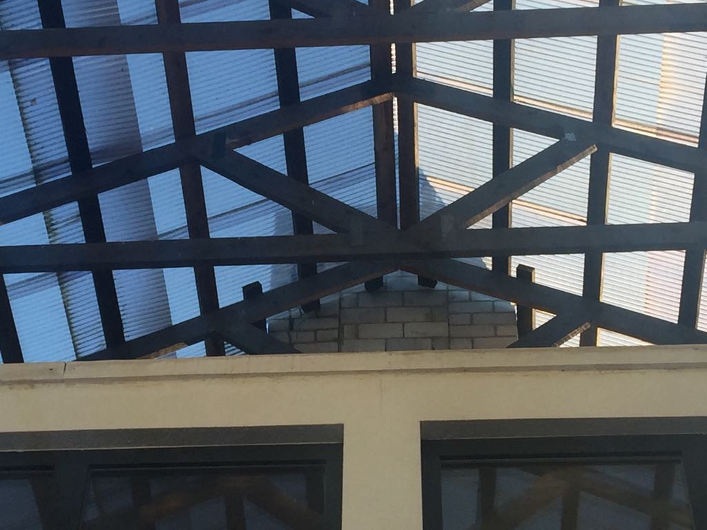 Paarismaja vahelise aatriumi kergkatus on vaja madalamale lasta, katus on puit konstruktsiooniga, katuse kate, läbipaistev laineline plastikust plaadid. Katuse madalamaks laskmisega koos on vaja madalamaks ehitada ka nelja lõõriga tellistest korsten, korstna liigne osa lammutada, korstna küljest lahti monteerida liigne kaabeldus ja seadmed mida ei kasutata.