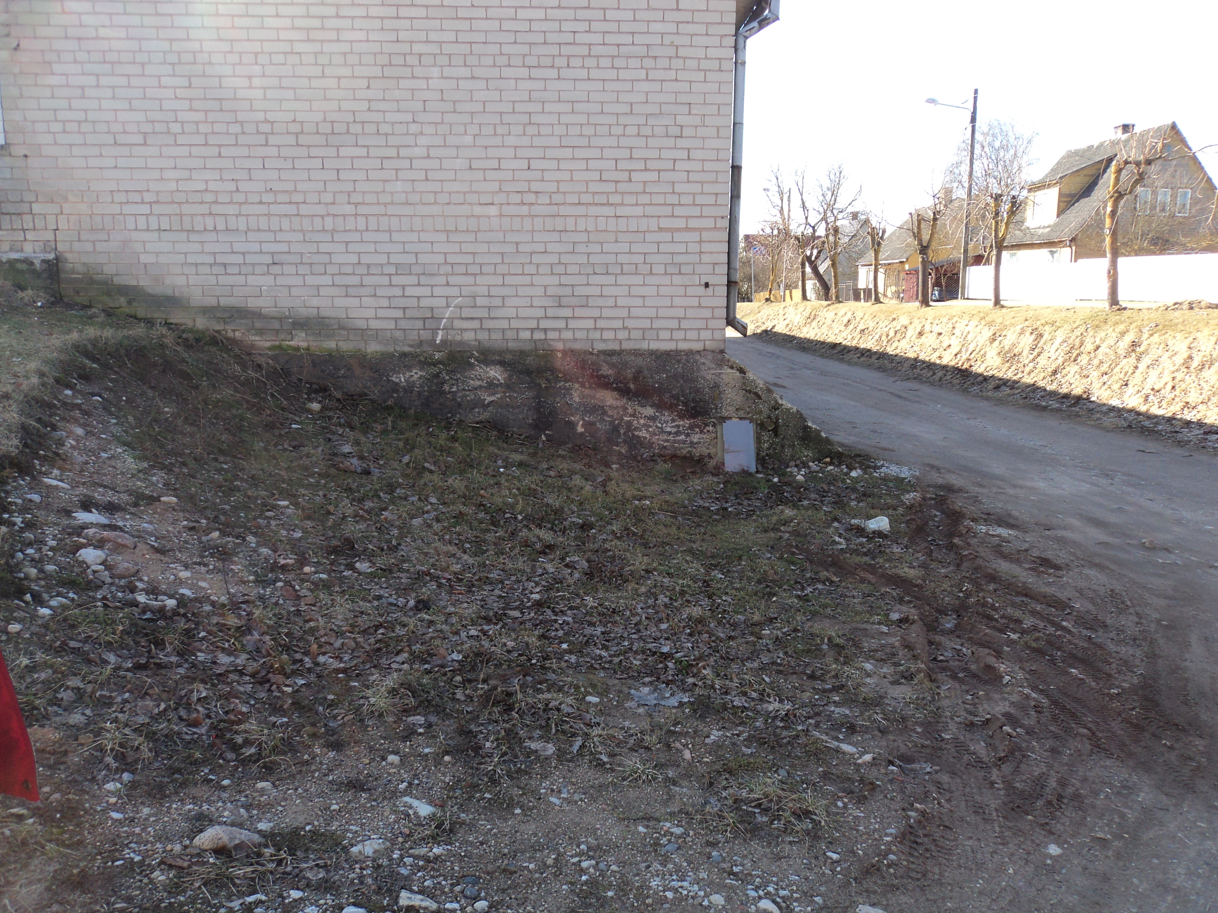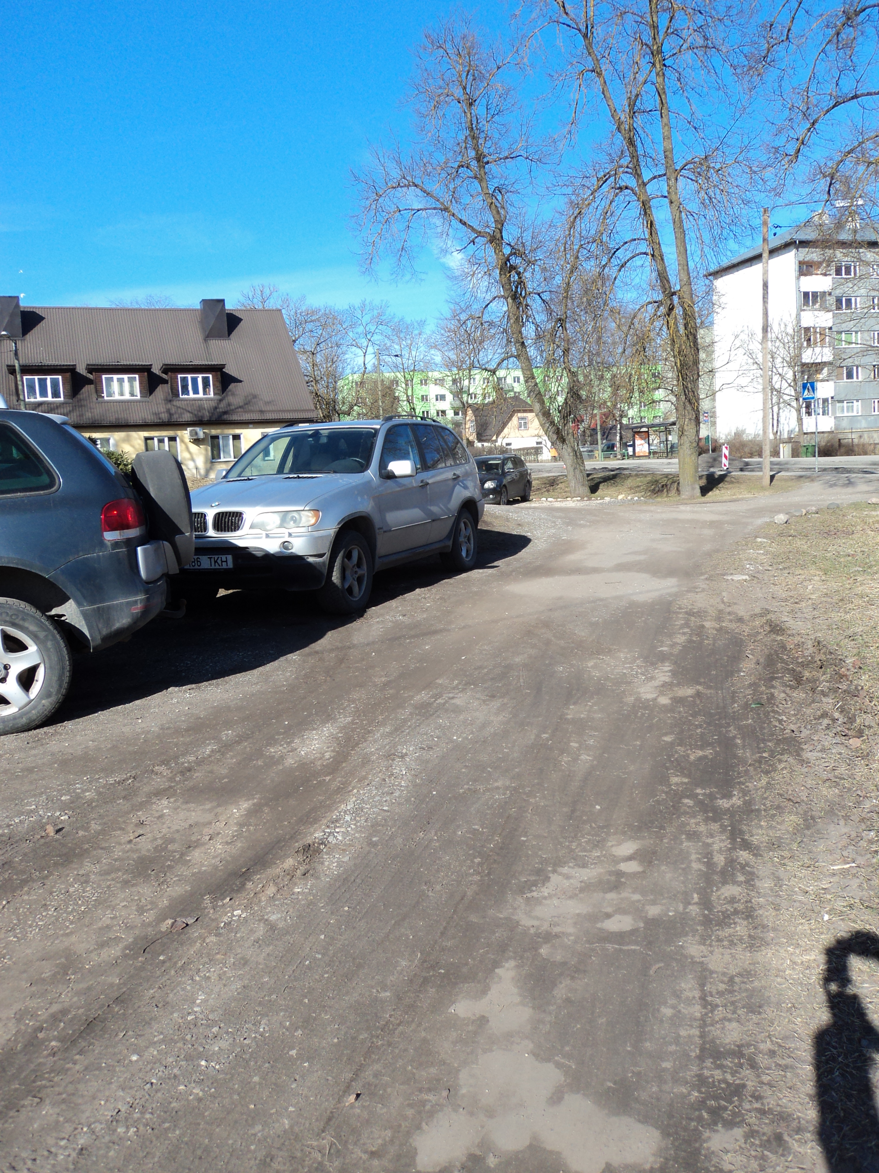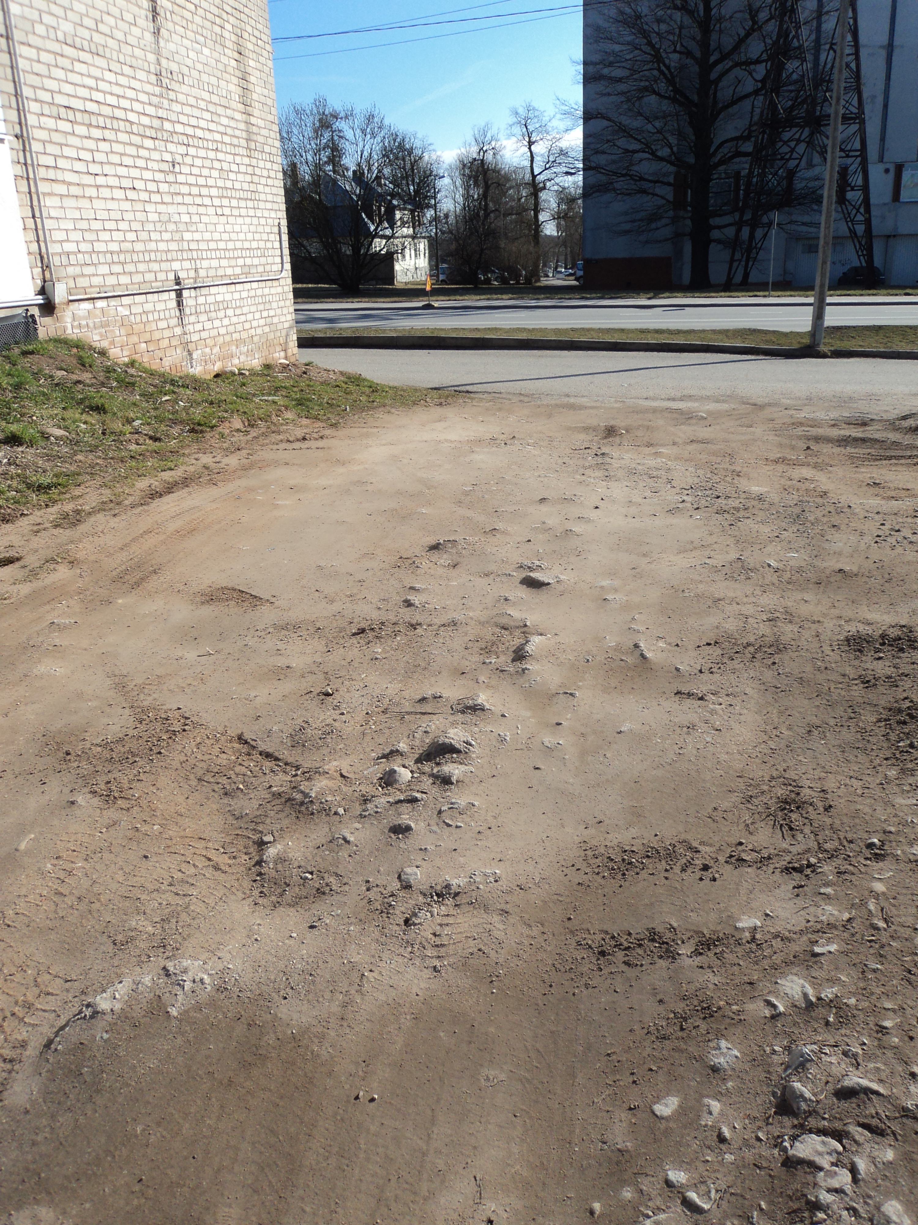 Tõenäoliselt tuleb enne teekatte paigaldamist rajada ka sadeveetorud (-kaevud) ning drenaaž kui lihtsalt kalde tekitamisega vee ja pori kogunemise probleemi lahendatud ei saa, sest seni on ainult freespuru laotamise tagajärjel peagi taas poriloigud ja augud tekkinud. Orienteeruv katmist vajav pind on 110m * 8m garaažide ühel küljel ning kolm ligipääsuteed orienteeruvalt 25m * 5m igaüks. Garaaži teisele korrusele sissesõidu juurde on ehk mõnes kohas ka vajalikud äärekivid, kui katteks pakutav materjal võib hakata vihmade tagajärjel liikuma.