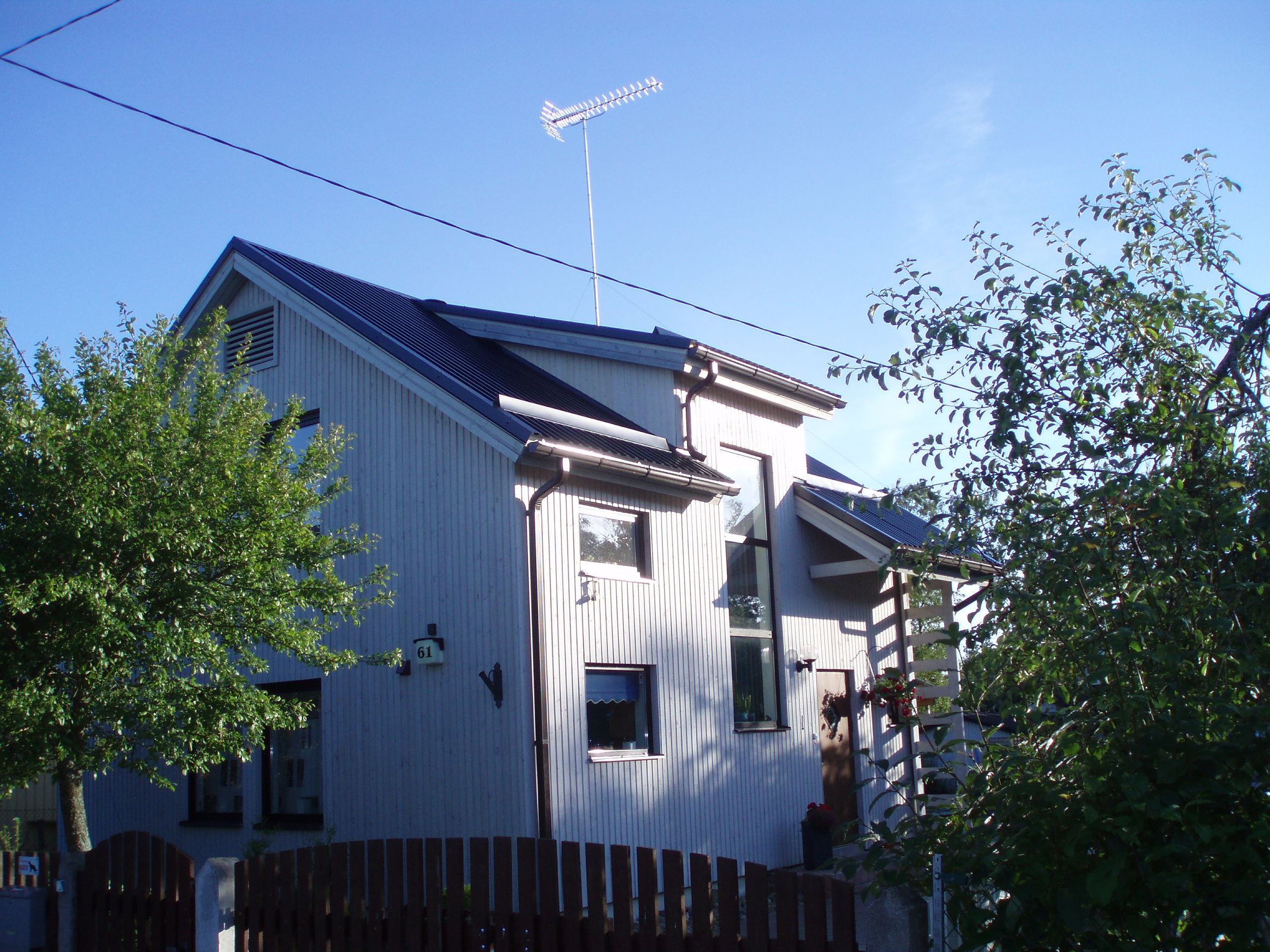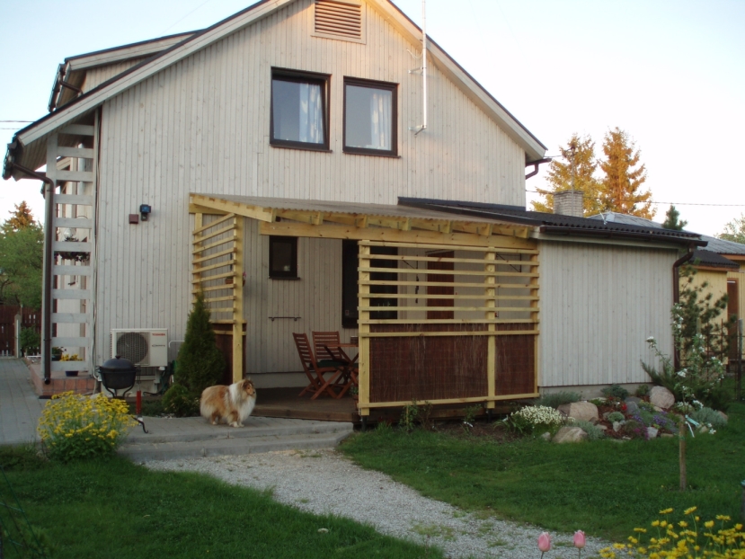 2002 aastal ehitatud puitmaja laudise värvimine. Originaalis Kolorex aga soovituslik Villa Akva või Villa Ultima. Maja mõõdud 7,7m x 7,3m põhjplaan ja viilu kõrgus 7m.