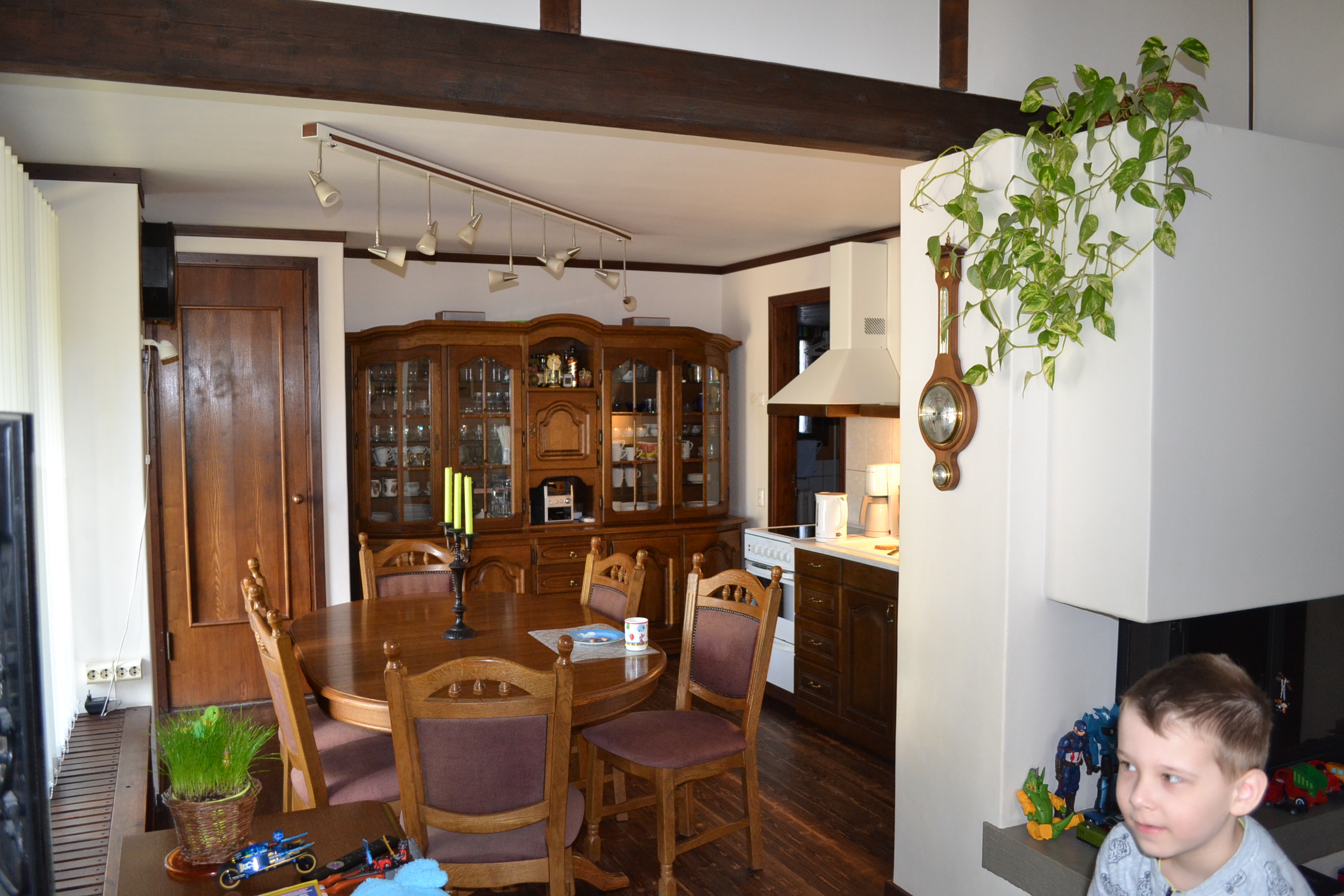Esimesel korrusel on suur elutuba koos avatud köögi ja kabinetinurgaga. Mai kuus tehakse alla uus põrand, mis kaetakse laudparketiga.
