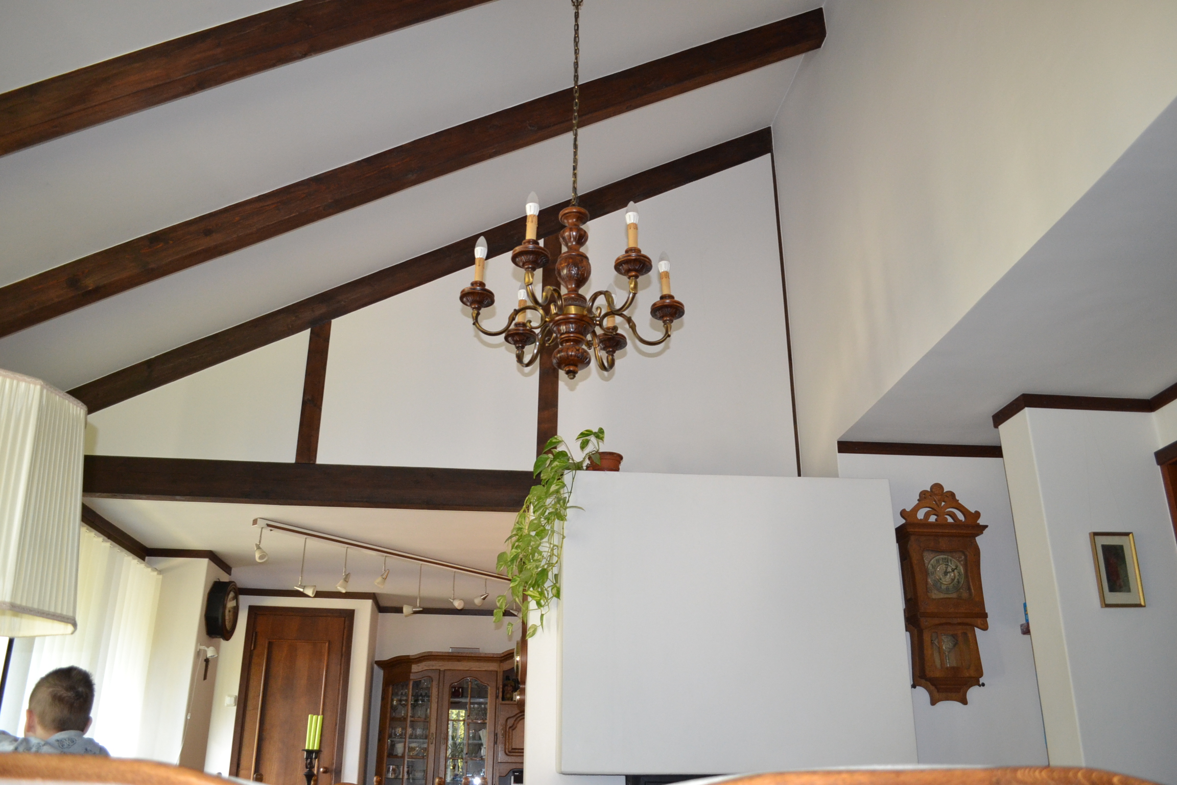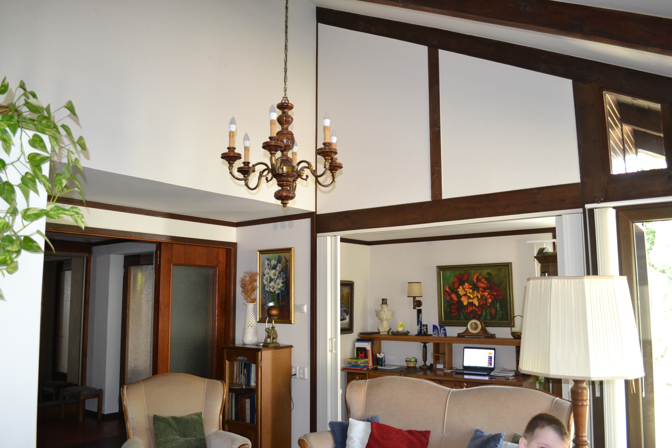 Peale põranda valmimist sooviksin värskendada laed ja seinad. Seinad on kivi, krohvitud, pahteldatud ja värvitud. Laed kipsplaadist, pahteldatud ja värvitud. Suuri ebatasasusi ja pragusid ei paista. Arvan, et seinad võiks üle pahteldada, kuna pind pole päris sile. Elutoas on suur kamin, mis on sama värvi lagede-seintega.