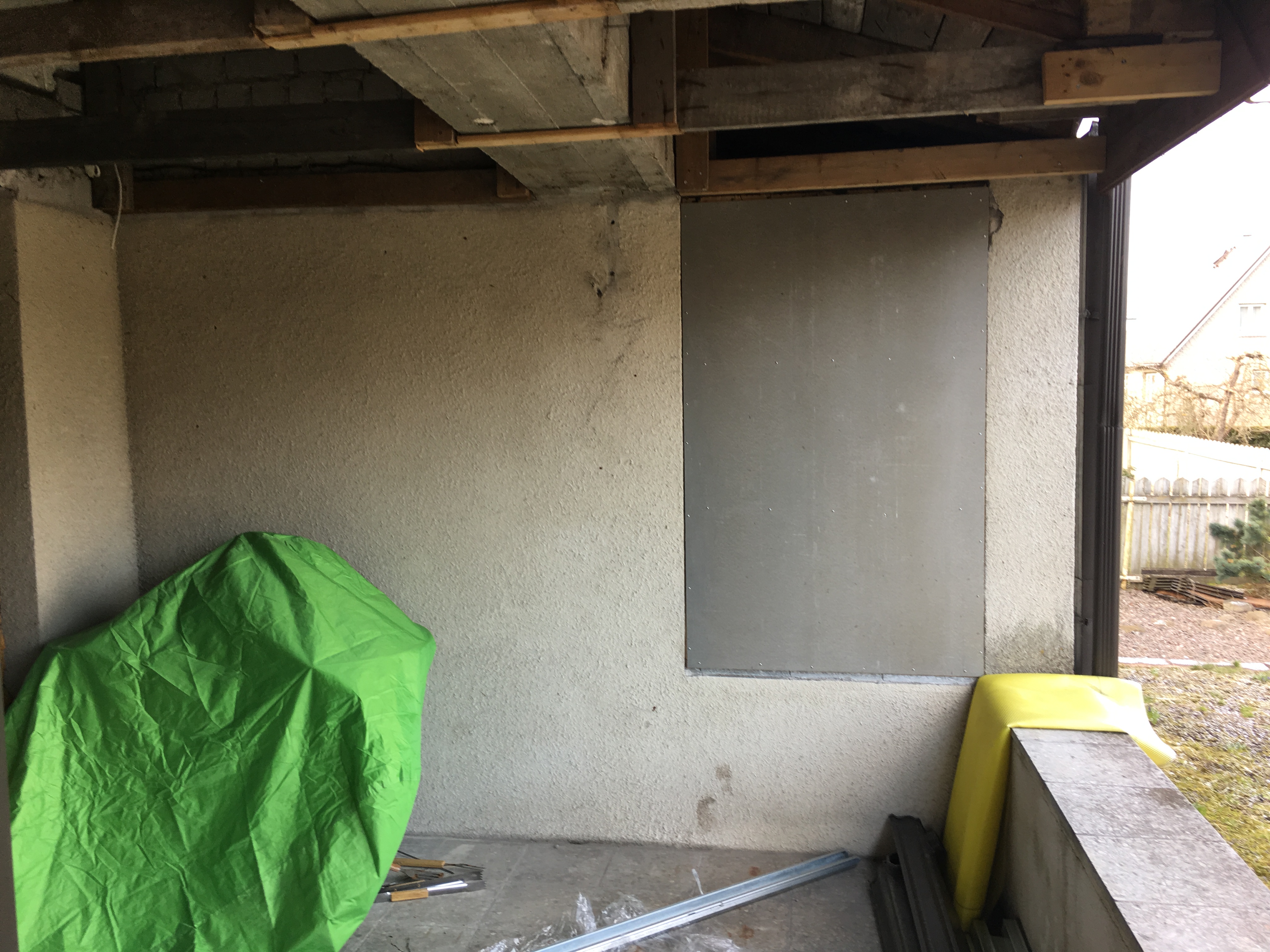 45m2 - täielikult uus krohvimine aluskrohvi ja viimistluskrohviga. Vana krohv on seinas, kui vaja, saan lahtised kohad ise maha võtta. Ca 10jm on tuulekasti laudisega piirnevat ala, kui see oluline peaks olema