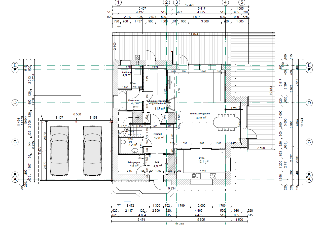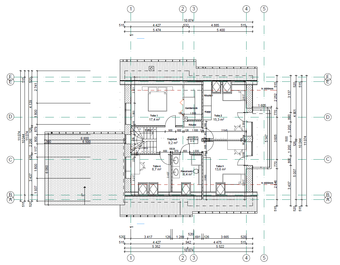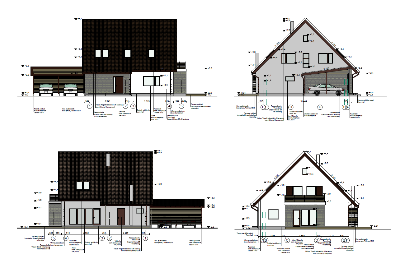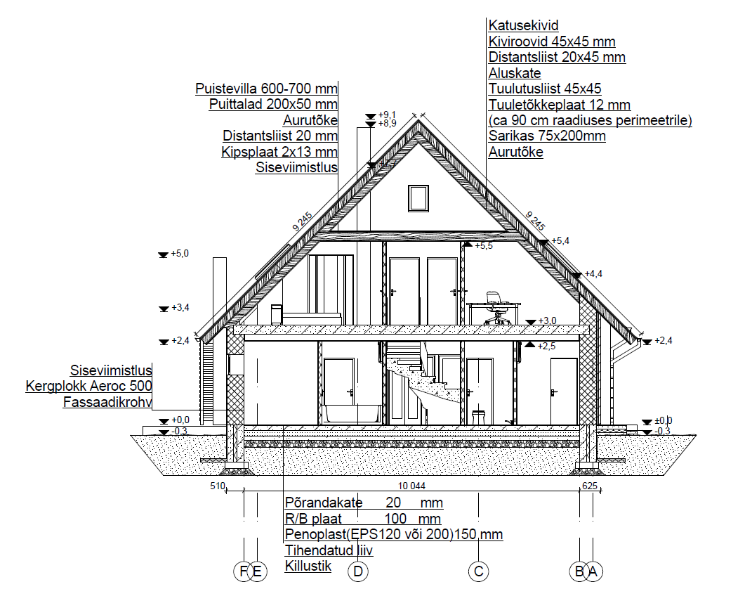 Eramu põhiprojekti koostamine: kivimaja (Bauroc 500, Bauroc vahelagi), viilkatus (kivi; katusekalle 45).