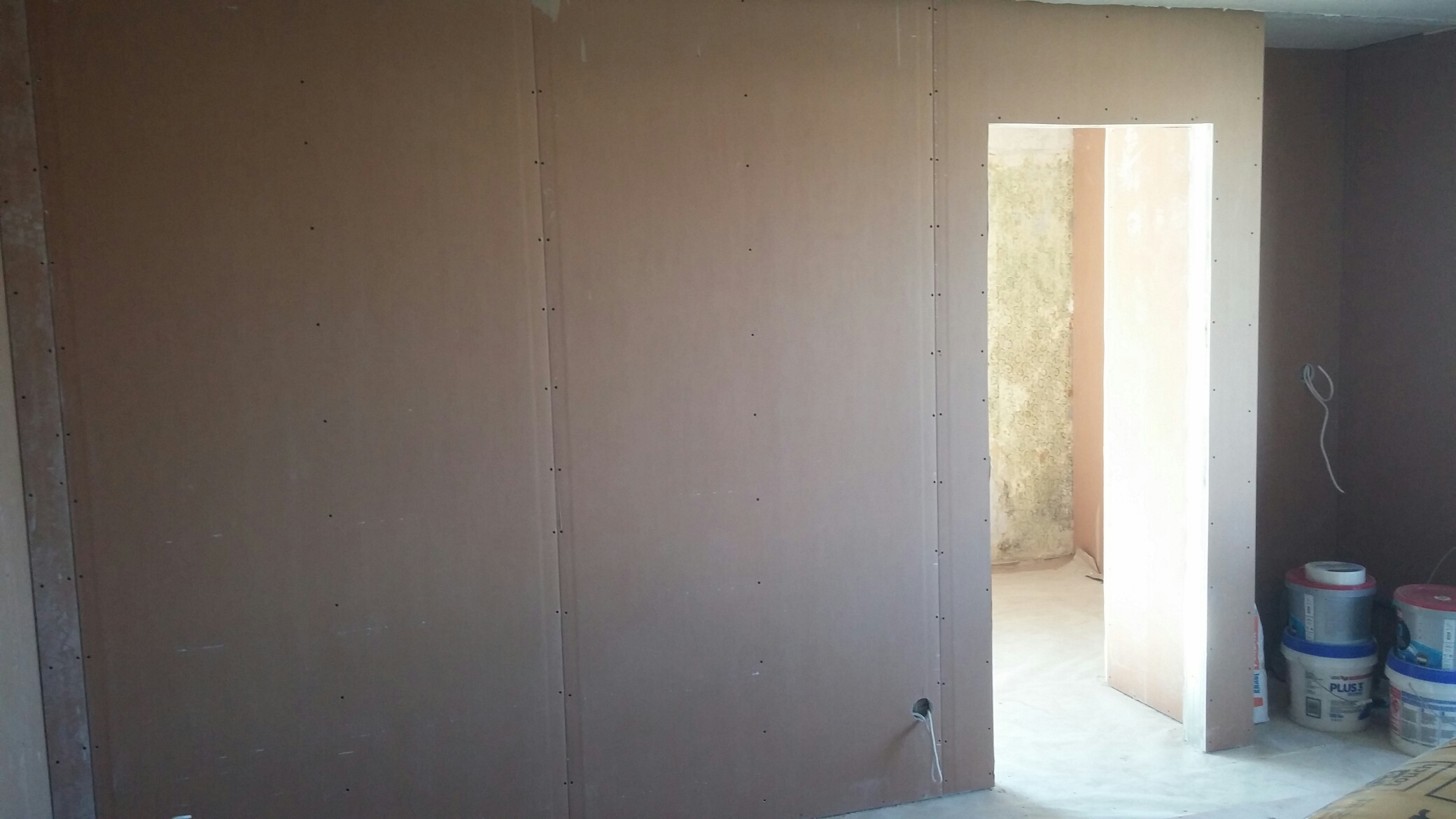 ~ 100 m2 on seinu. Enamik on kipsseinad - täispahtel + värv. 2 seina on ka välisseinad, mis oleks vaja uuesti krohvida, sirgeks ajada ning värvida.