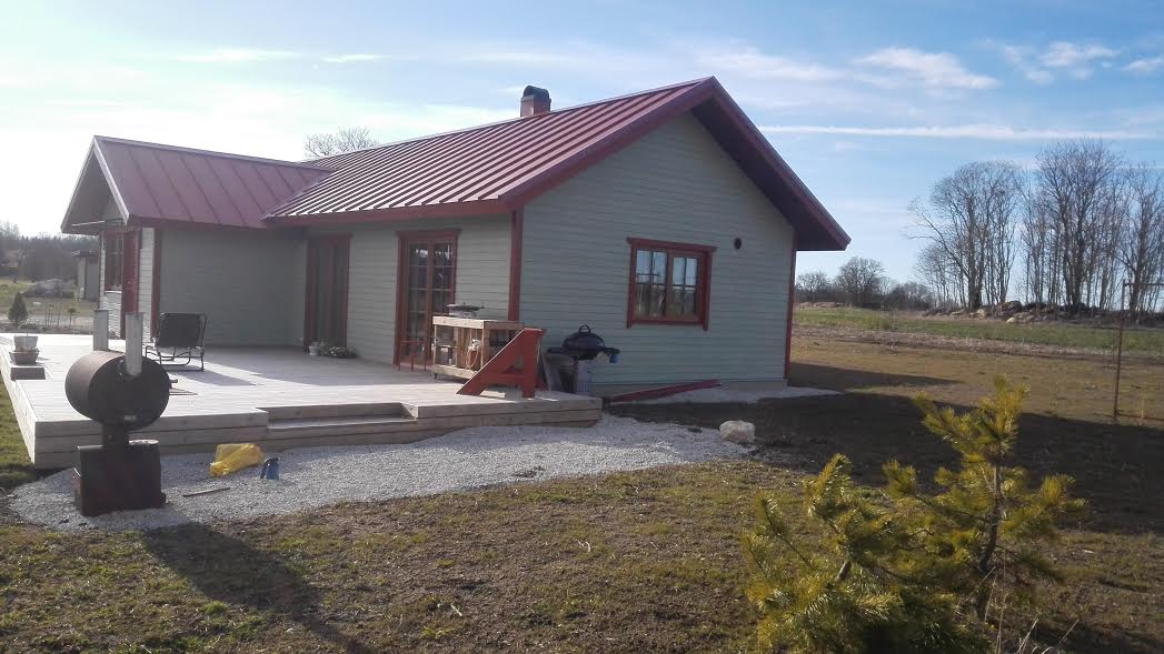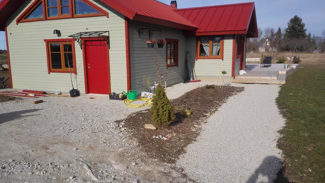 Maja ümber ja käigutee kivide paigaldus. Kivi tuleb ilmeselt mungakivi: http://www.raekivitehas.ee/tooted/sillutuskivid/