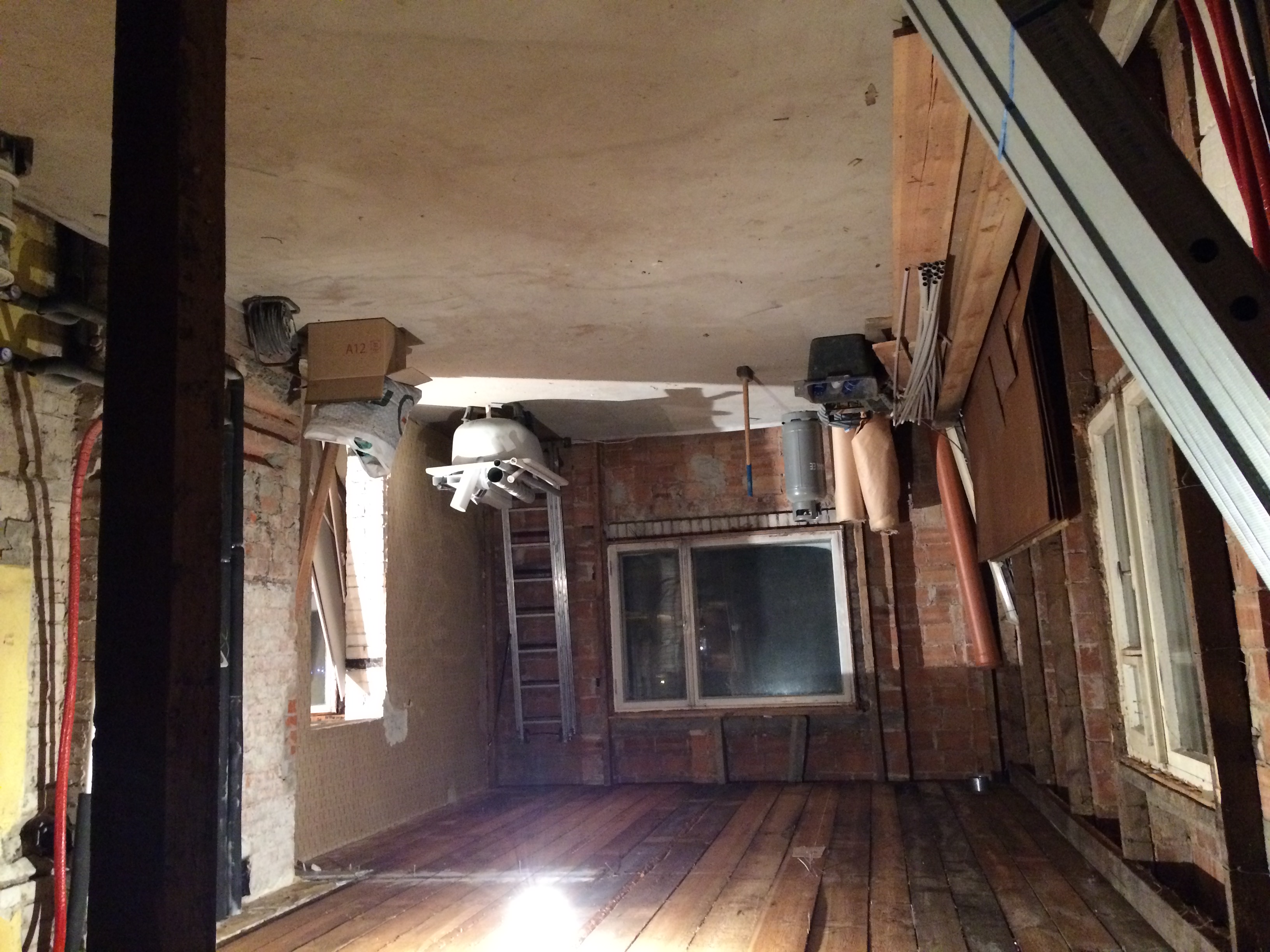 Piltidena lisatud juurde hetkeolukord ja pilt esimese korruse projektist. Enne tööd on kavas paigaldada uued aknad ja kipsi karkass peab arvestama hilismate aknalaudade paigaldust.