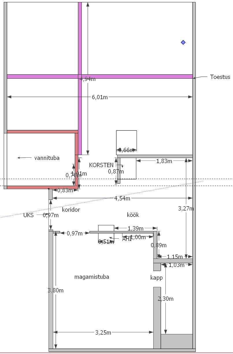 3) Vannitoa uute seinte ehitus. 2 *kipsplaat. Vannitoa suurus 4,5 m2